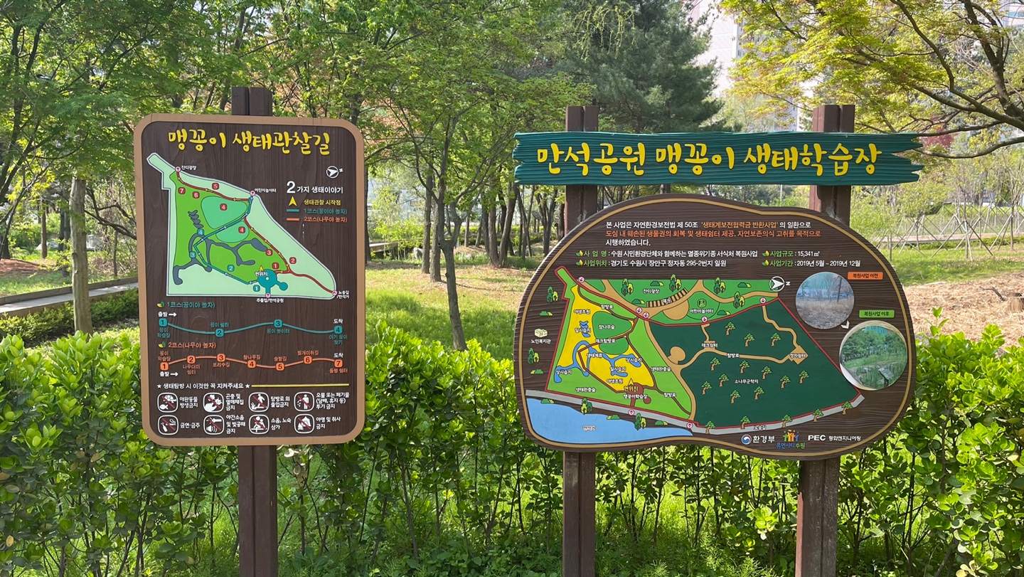 만석거 둘레길과 수원시립만석전시관까지 여유있게 둘러보았는데 1시간 정도 걸린 것 같아요.