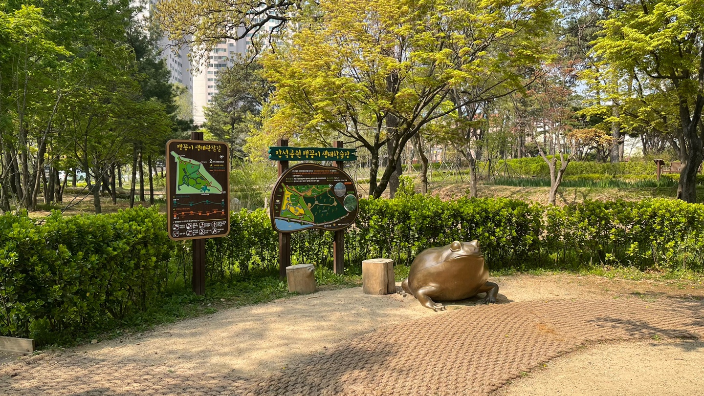 '맹꽁이 생태학습장'입니다. 아쉽지만 맹꽁이는 보지 못했어요.ㅜㅜ