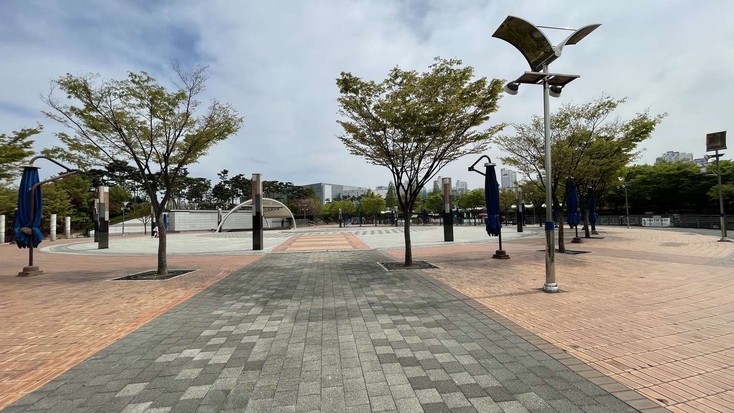 공원 중앙 광장에 바닥분수가 있는데 아직은 운영을 안합니다.