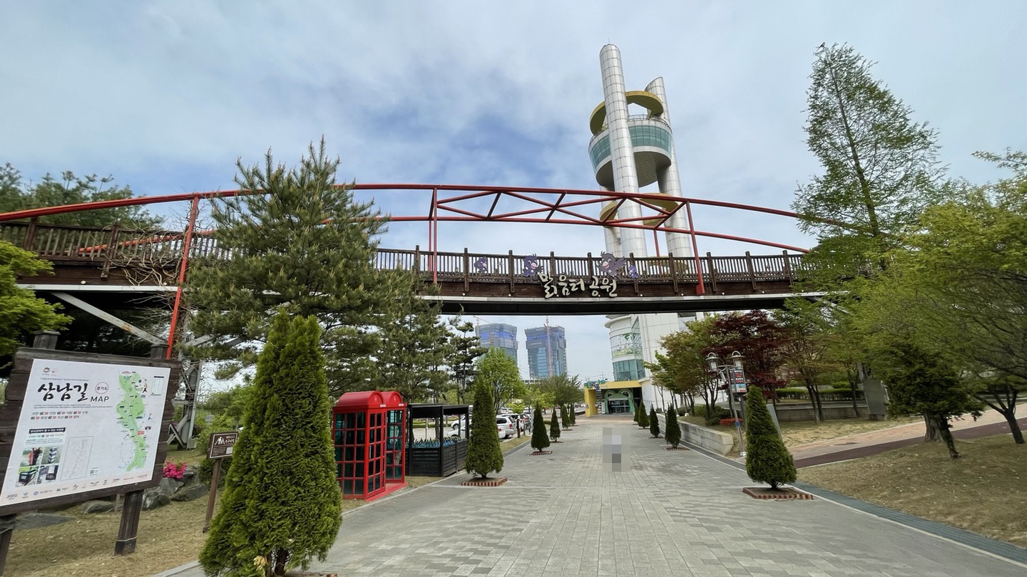 맑음터 공원 입구입니다. 위쪽에 긴 다리가 있어요.