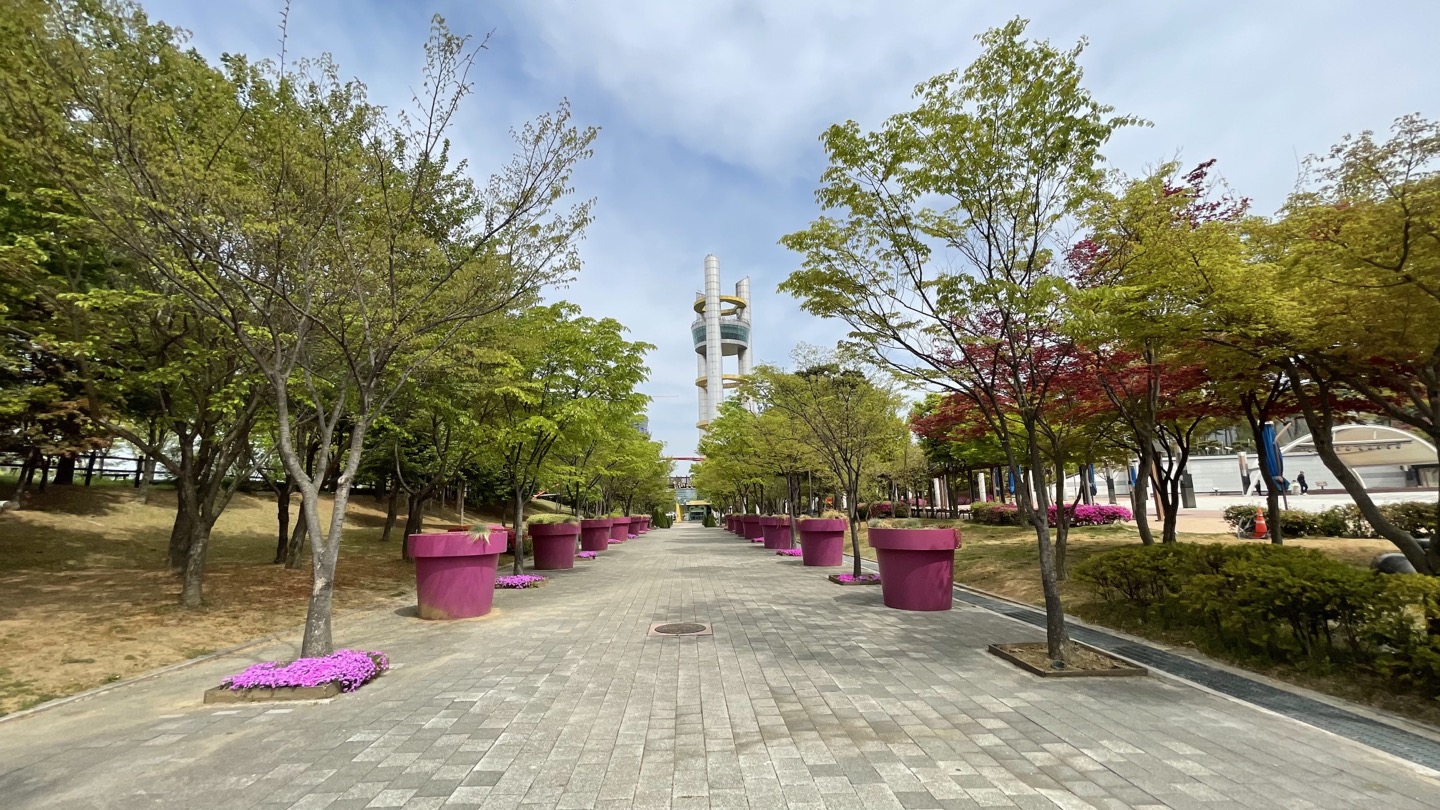공원 중앙 광장에 바닥분수가 있는데 아직은 운영을 안합니다.