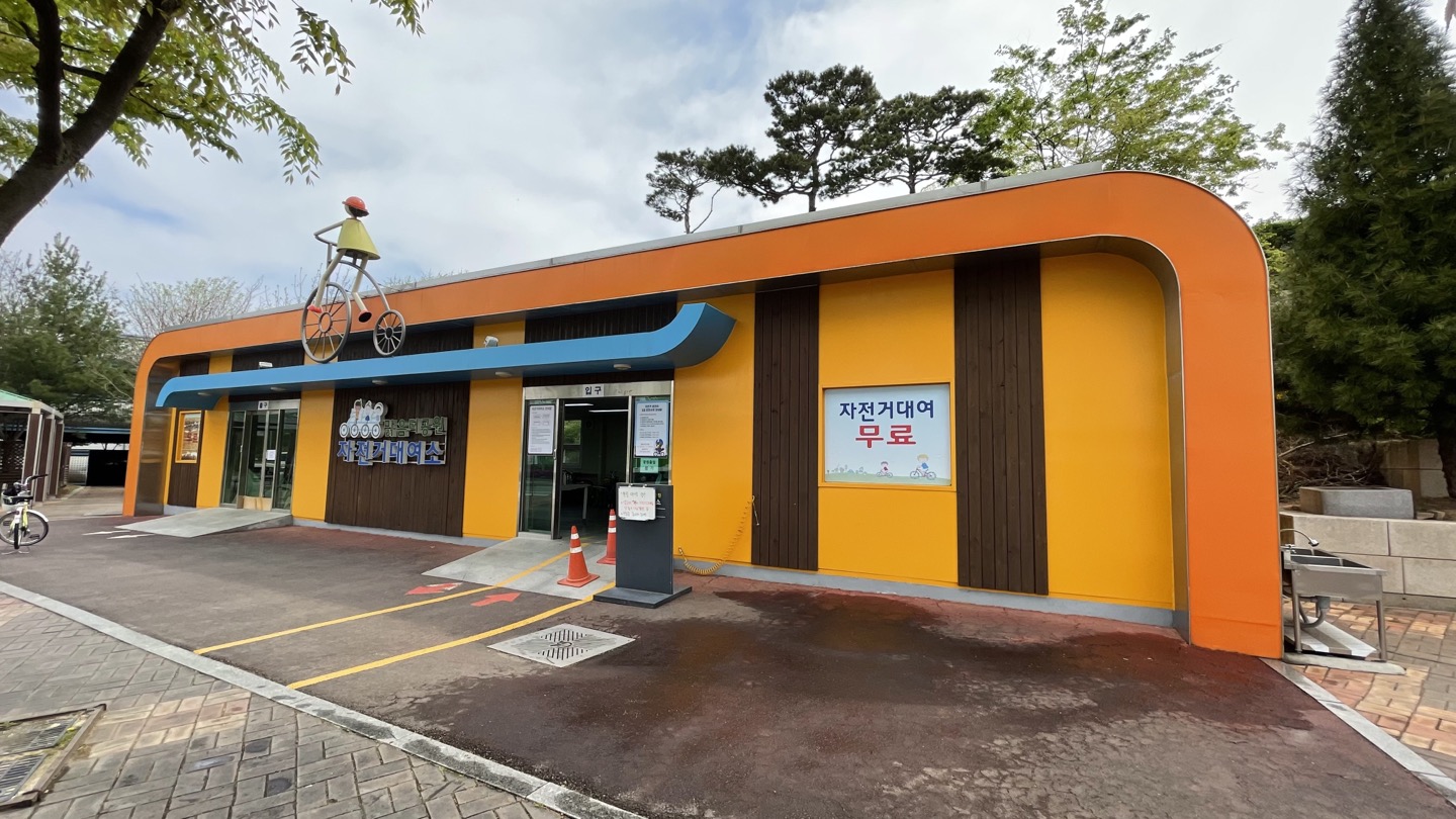 오산에코리움 옆에 '맑음터공원 자전거대여소'가 있습니다. 이곳에는 2인용 자전거가 있어요~