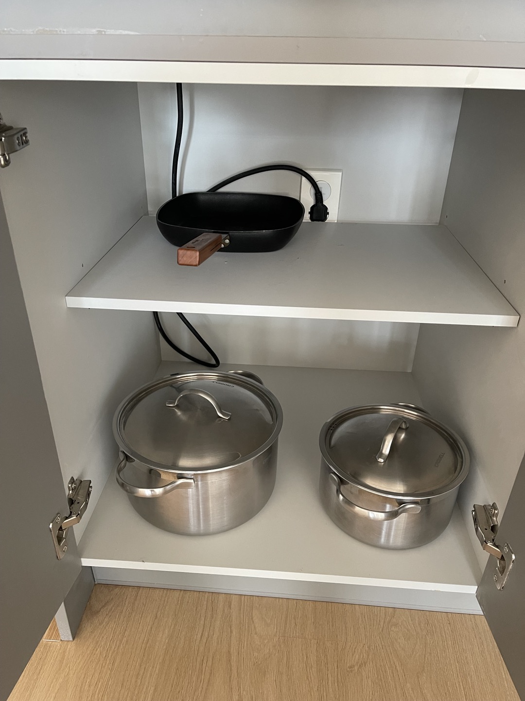 인덕션이 설치되어 있고, 기본적인 그릇과 수저, 조리도구들이 갖추어져 있습니다. 깜빡하고 그릇들을 못찍었는데, 컵과 그릇들은 인원수에 맞게 구비되어 있습니다.