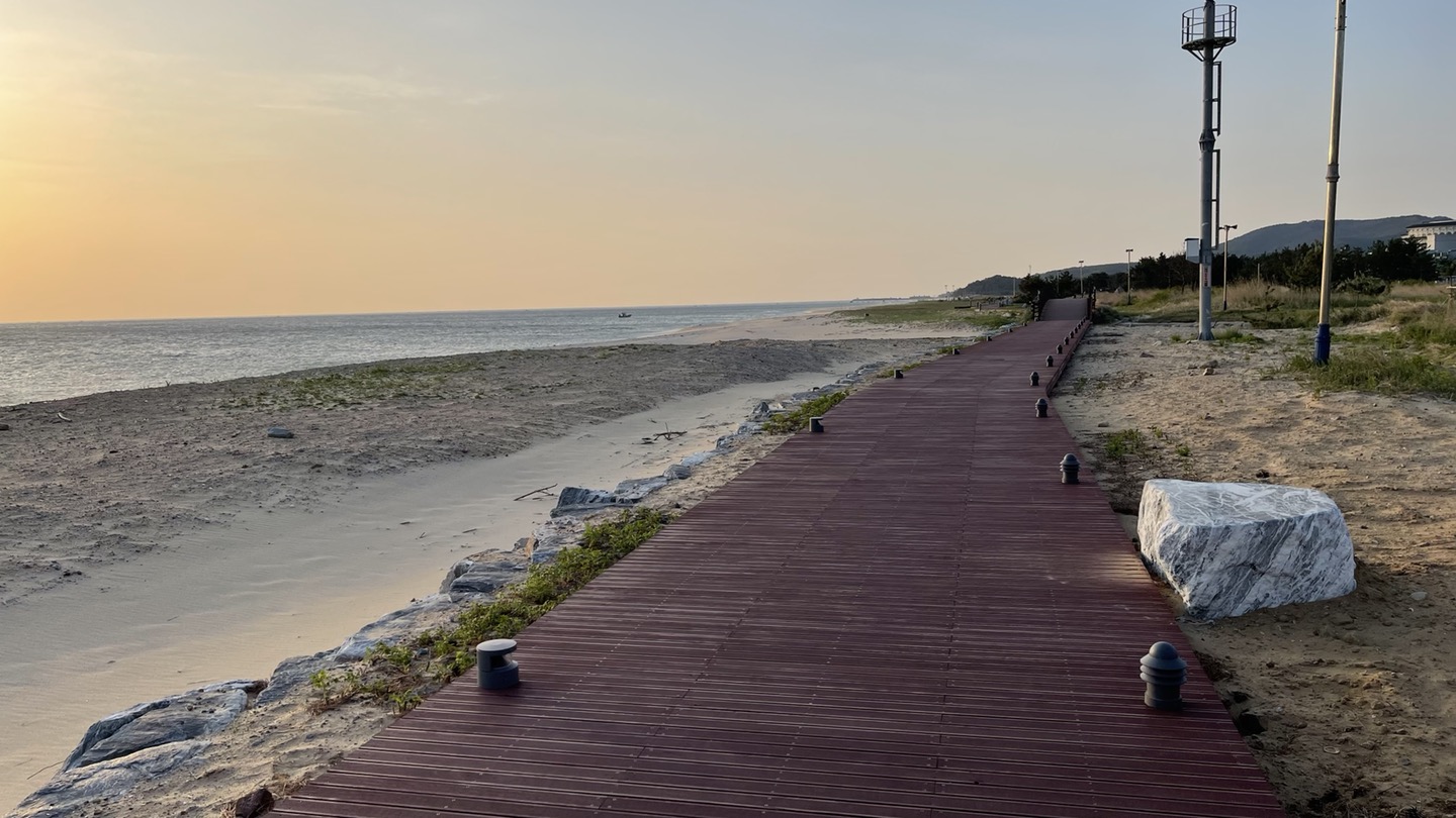 망상오토캠핑리조트 앞 해변에는 나무데크가 설치되어 있어 산책하기에도 좋습니다.