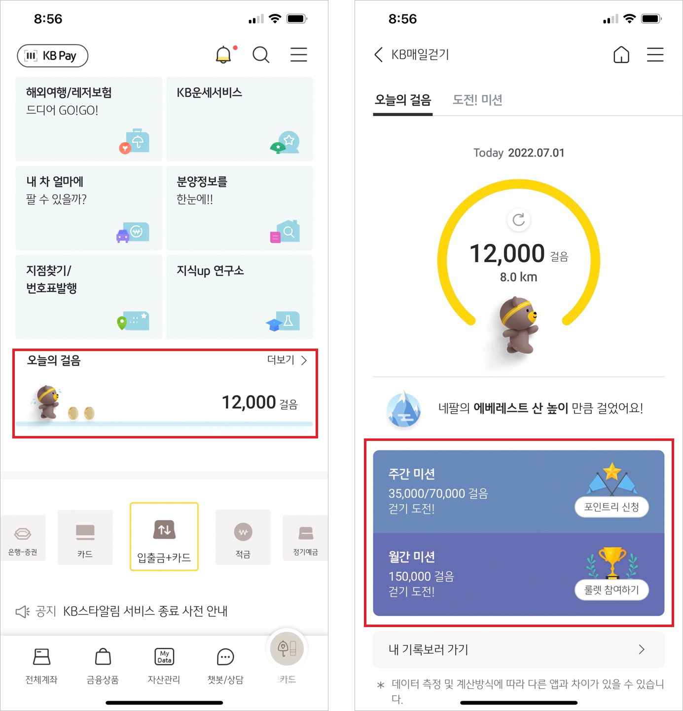 3. KB스타뱅킹 : 오늘의 걸음