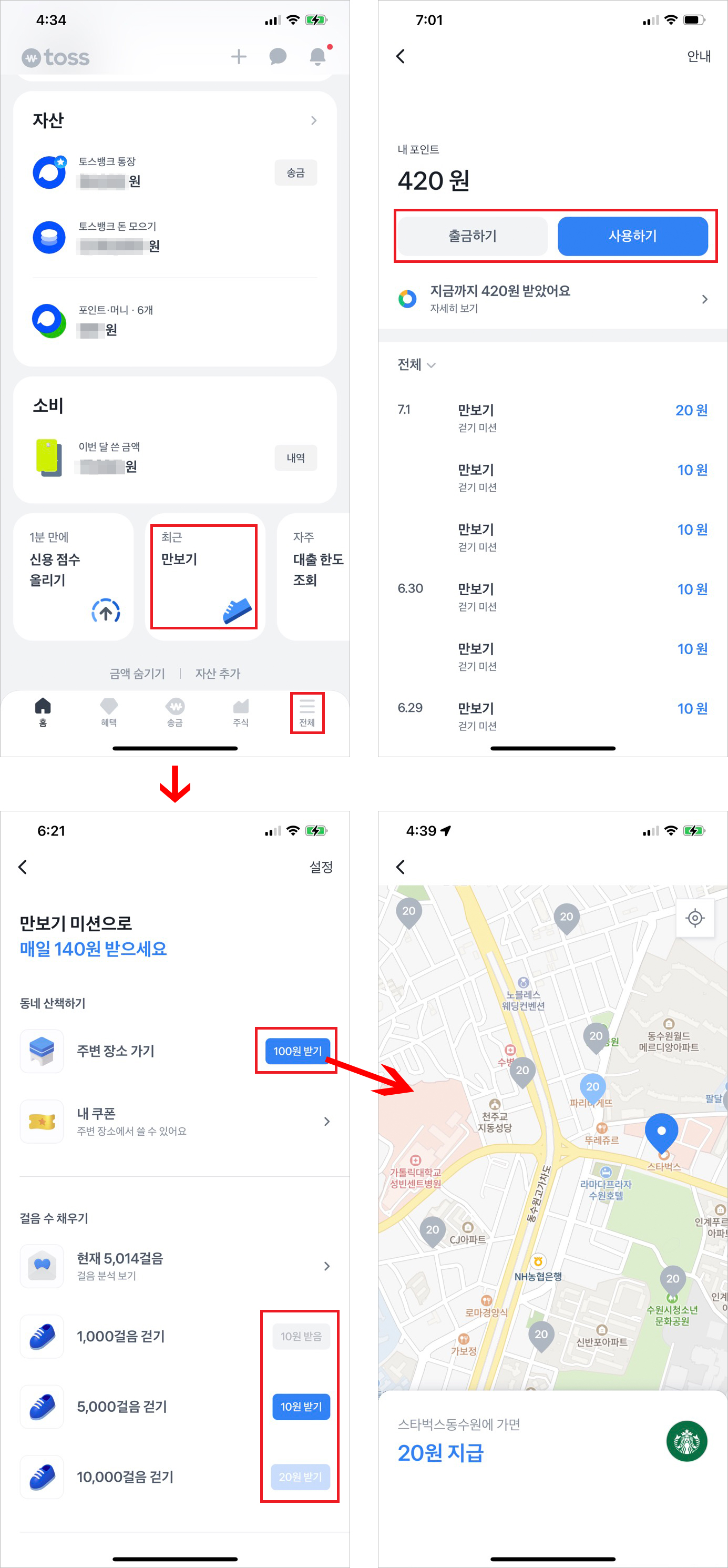 '주변장소가기'를 통해 추가로 포인트를 더 쌓을 수도 있습니다.