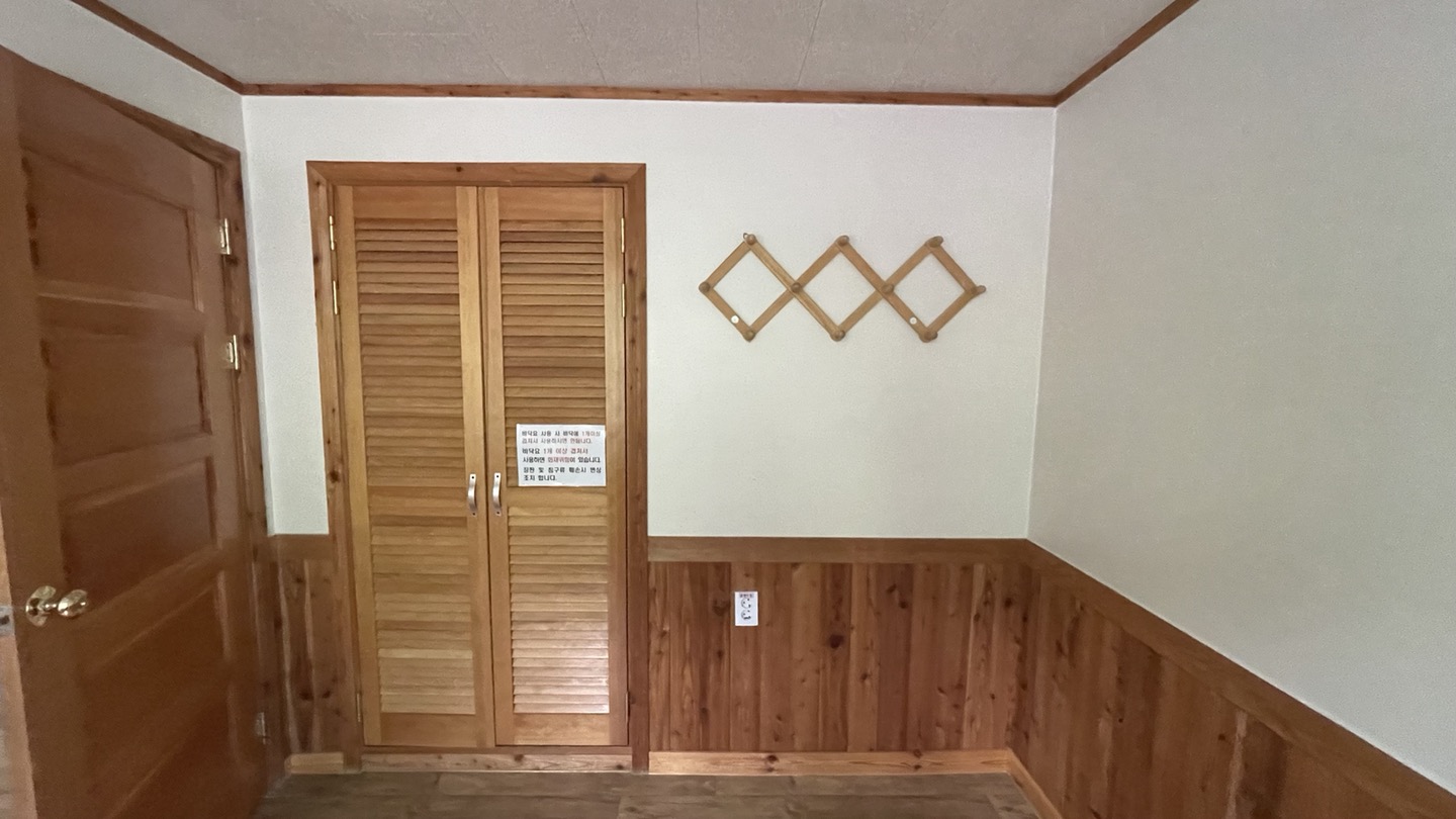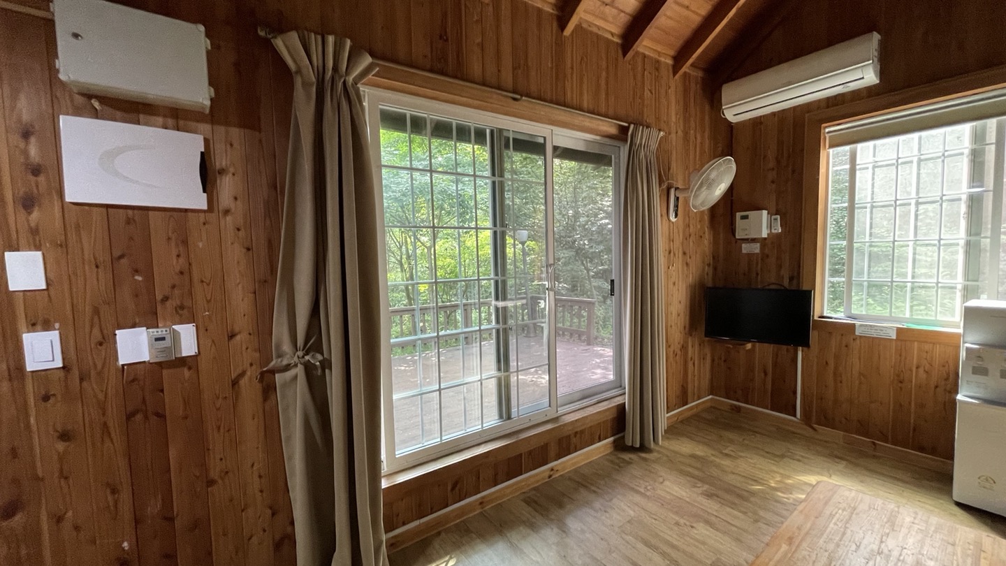 창문 잠금쇠가 망가져 있고 커튼이나 블라인드가 고장나 있어서 만족스럽지는 않았지만, 자연휴양림의 특성을 고려하면 뭐 그려려니 할 수 있는 수준입니다. 청소 상태는 so so.