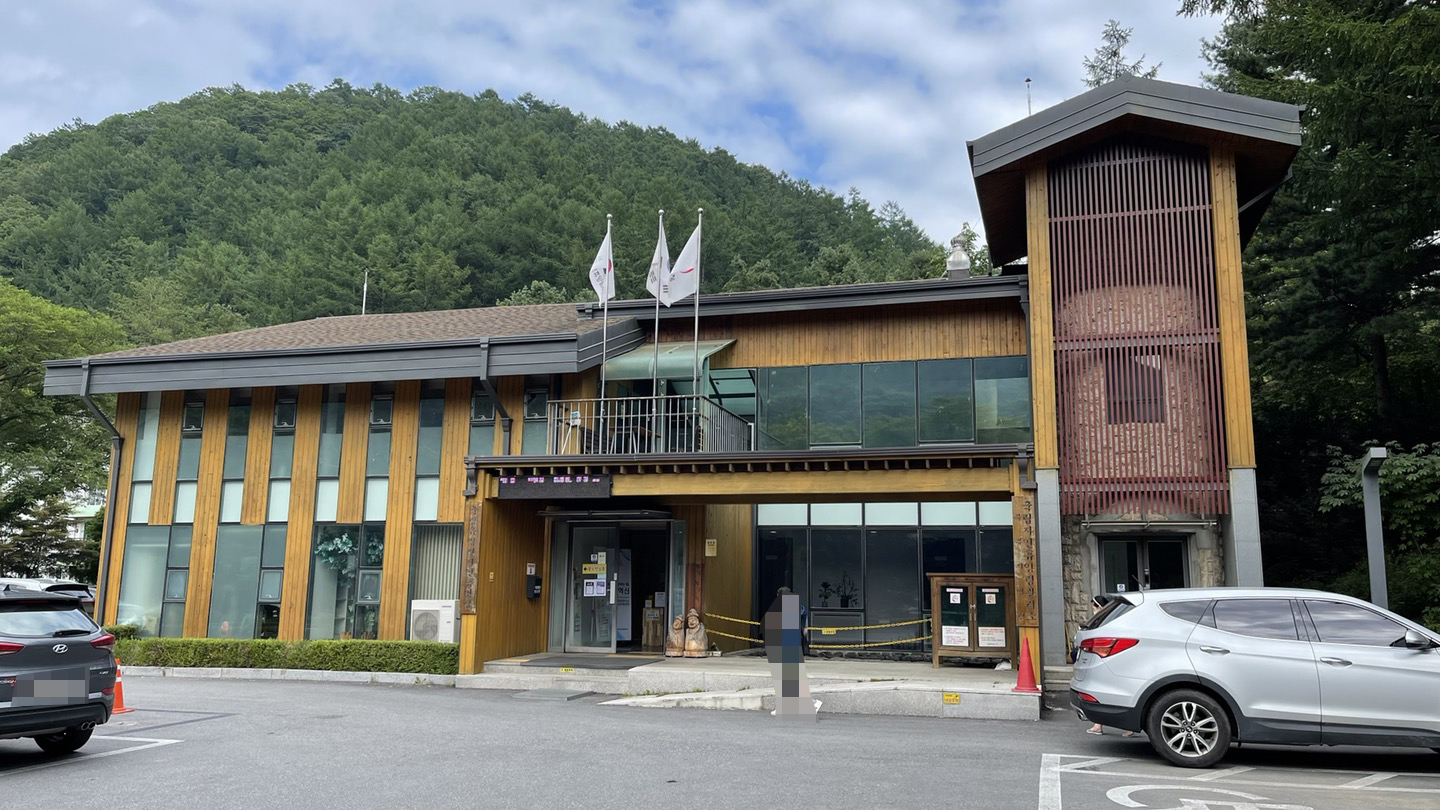 유명산 자연휴양림 관리사무소 입니다. 이곳에서 숙소 카드키와 기타 내용을 안내 받습니다.