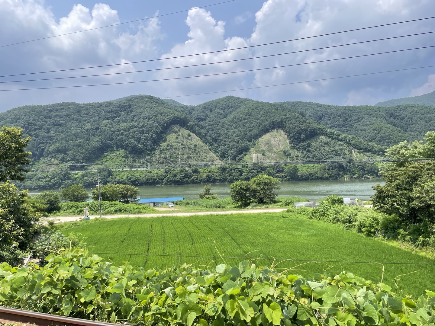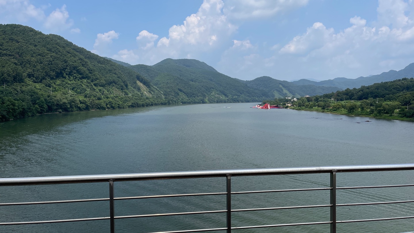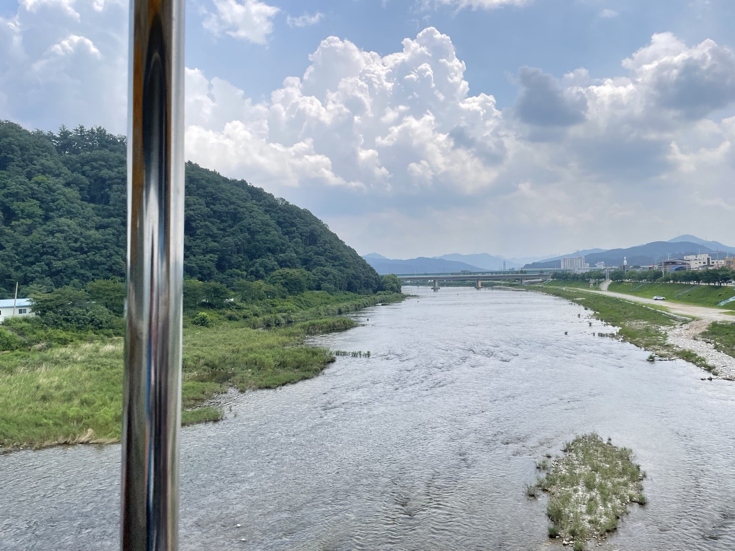 철길을 달리다 보면 북한강이 펼쳐집니다. 가평 레일바이크의 하이라이트라고 할 수 있을 것 같아요. 탁 트인 풍경이 참 멋있습니다.