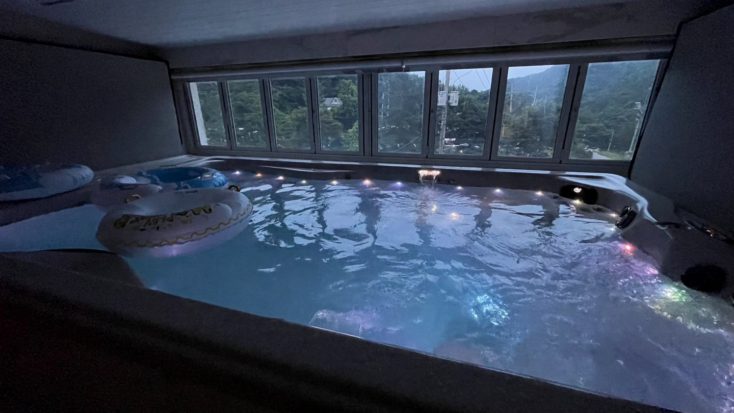 스파풀은 온수 추가비용 없고 다음날 퇴실 전까지 사용 가능하지만, 밤에 이용하지 않을 때는 덮개를 덮어 놓아야 합니다. 그렇지 않으면 실내 습도가 너무 높아져서 물방울이 맺히기도 한다네요.