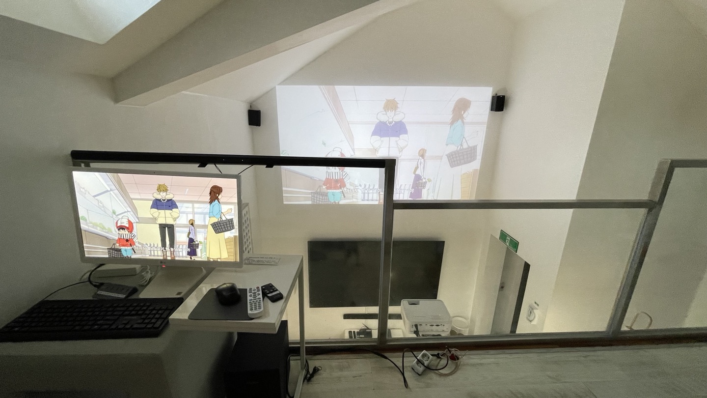빔프로젝터와 맞은편 하얀 벽면을 이용한 영화 감상도 가능합니다.