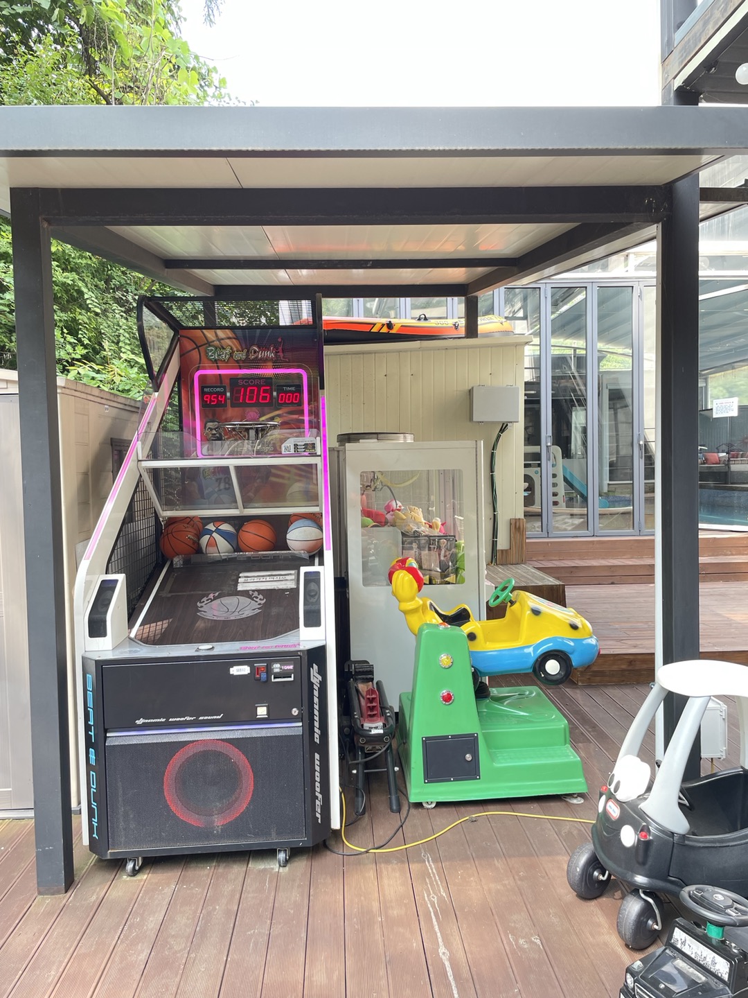객실동 입구쪽에 게임기와 아이들을 위한 장난감 등이 준비되어 있습니다. 고장난 것도 있고 세월의 흔적도 느껴져요.