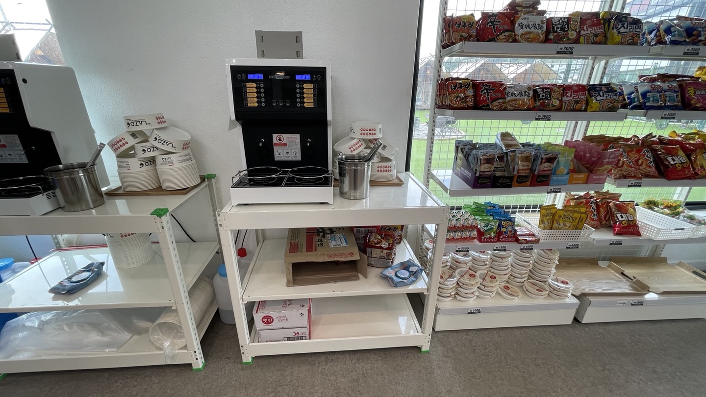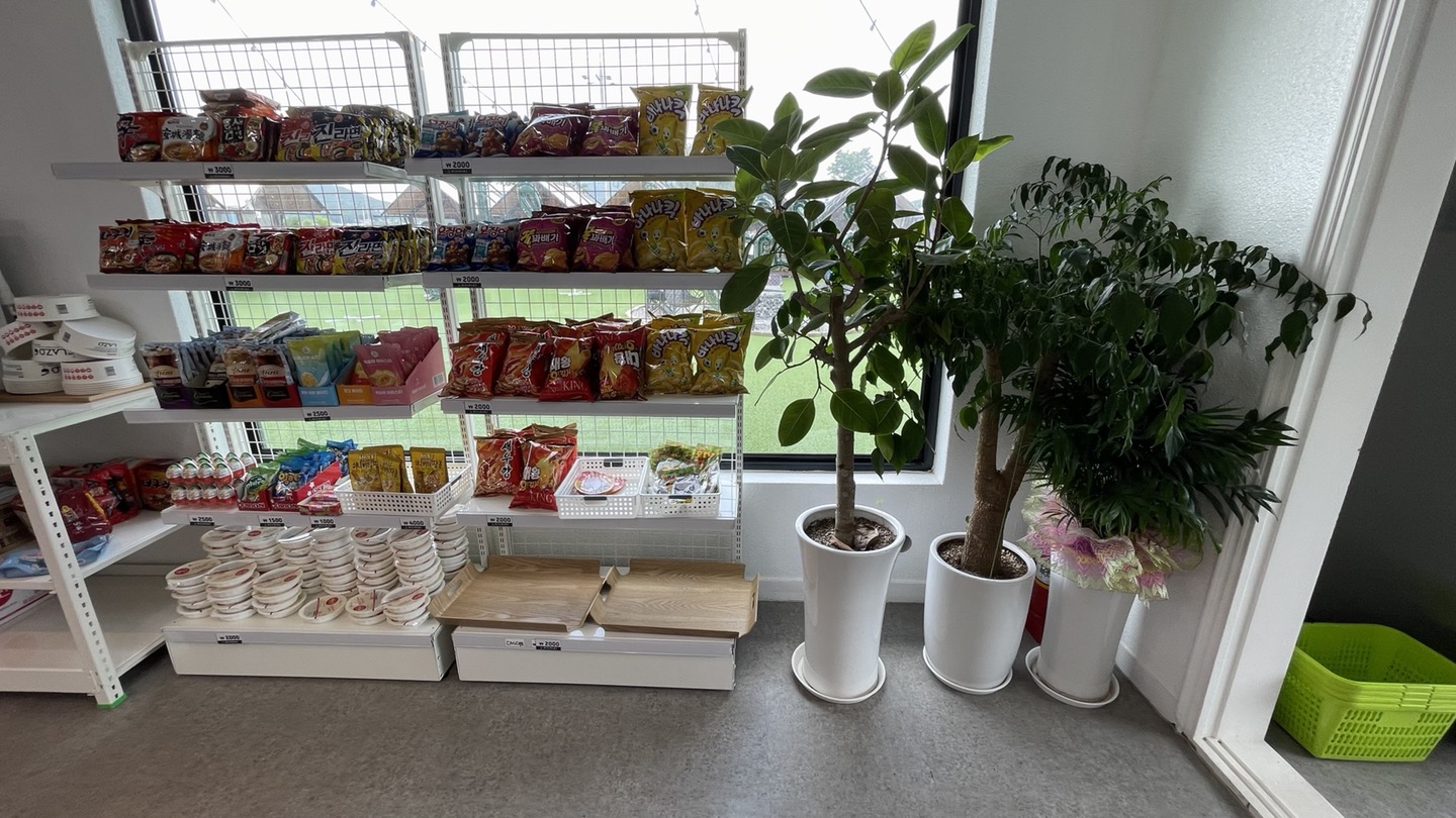 매점 건물입니다. 이곳에서 고기, 음료, 주류, 간식, 라면 등 모든 상품을 구입할 수 있습니다.