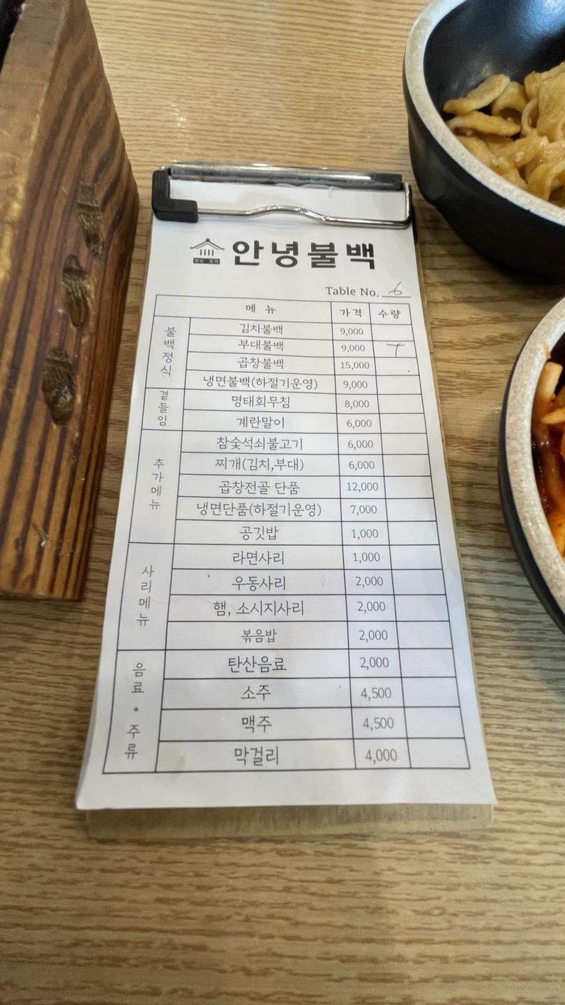 주메뉴는 '불백정식'이고요, 그 외에 메뉴 몇가지 있습니다.