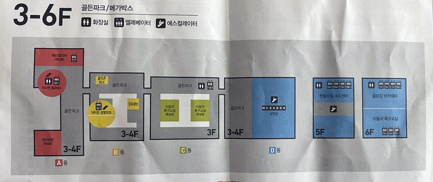 3,4층은 메가박스 영화관을 비롯해 레저 스포츠, 놀이를 위한 공간입니다. 이곳에 사람들이 가장 많기도 했는데요.