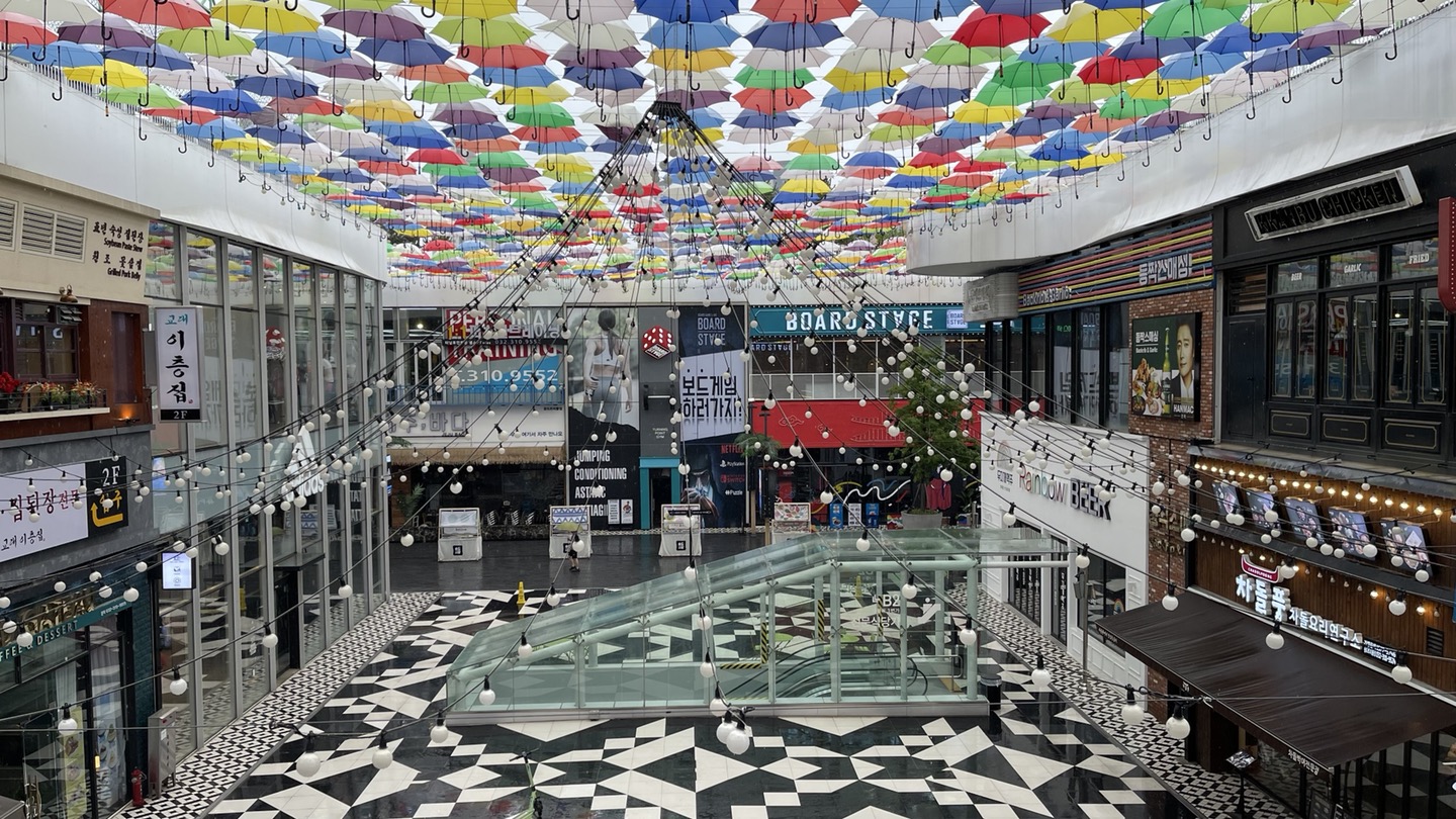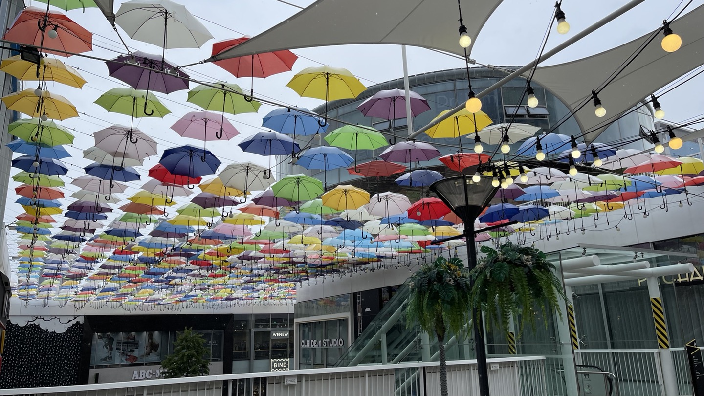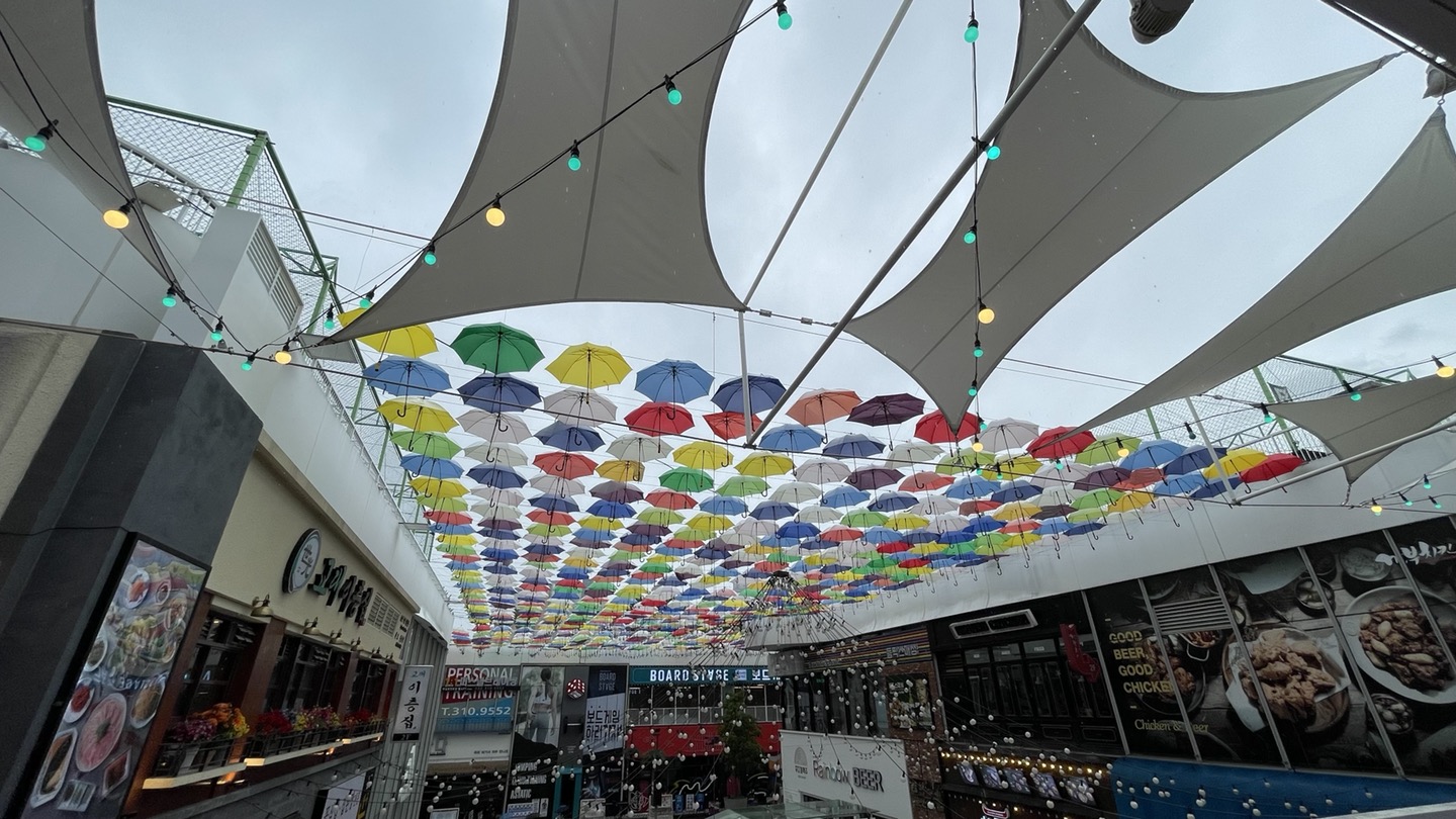 송도 트리플스트리트의 상징과도 같은 하늘을 장식한 우산들입니다. ㅎ