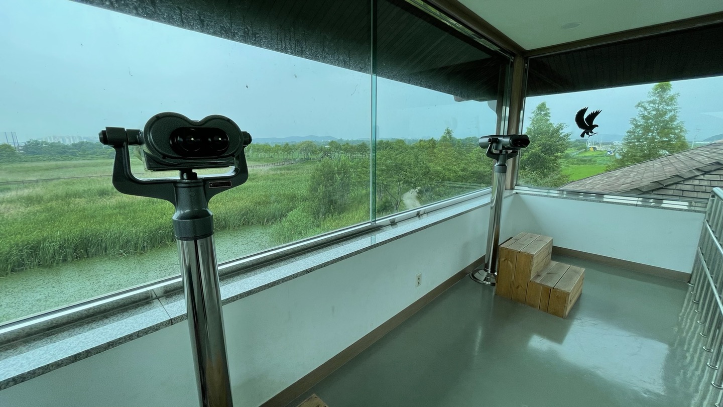 2층 전시실 옆에는 습지공원을 전망삼아 쉴 수 있는 휴식공간이 있습니다.