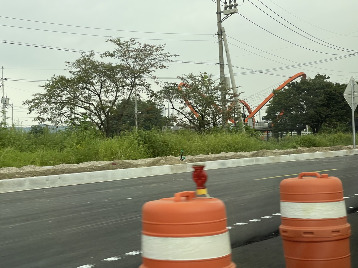 멀리 주황색 고리모양의 조형물이 보이는 길이 비봉습지공원으로 가는 길입니다.