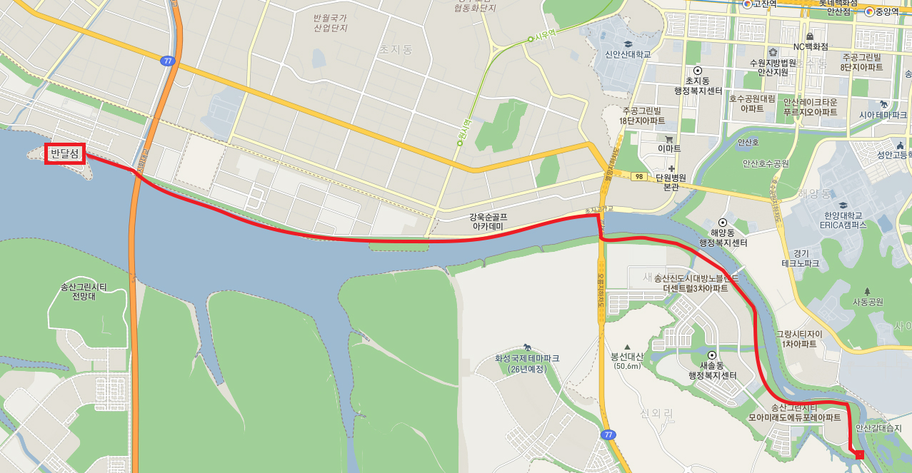 목적지는 안산 반달섬!
