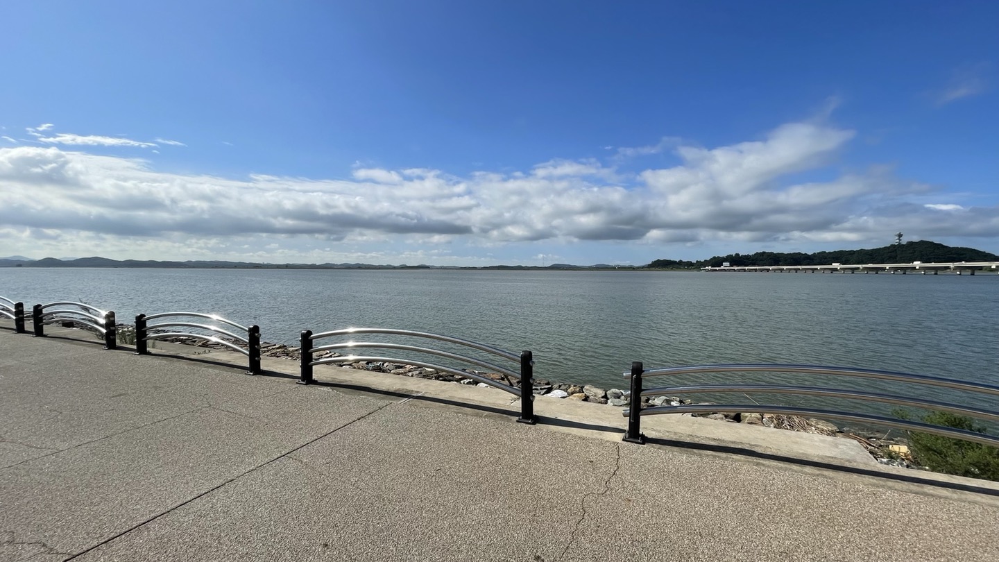 자전거도로 옆에 바로 시화호가 펼쳐져 있어 달리는 기분이 일품입니다. 멀리 시화대교가 보이네요.