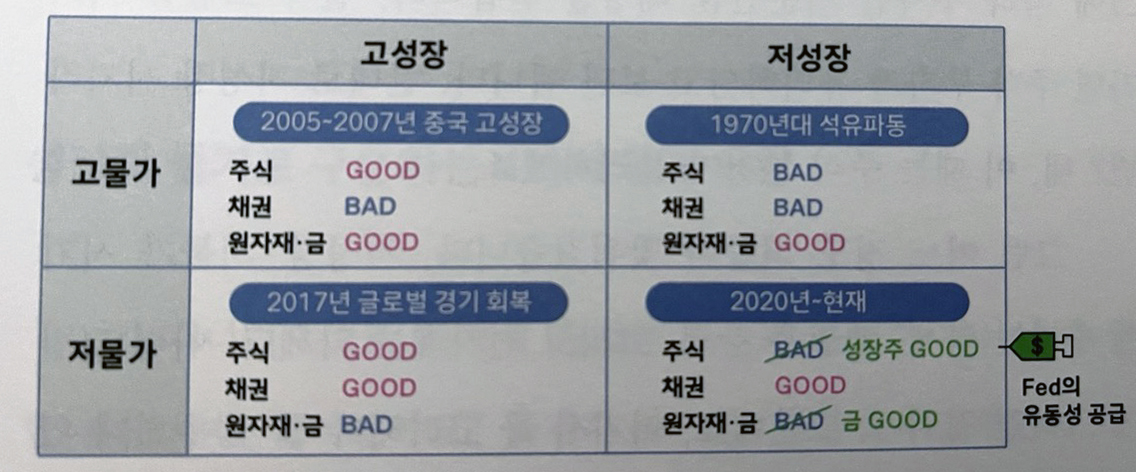 1) 고성장 + 고물가 : 주식↑ 채권↓ 원자재/금 ↑