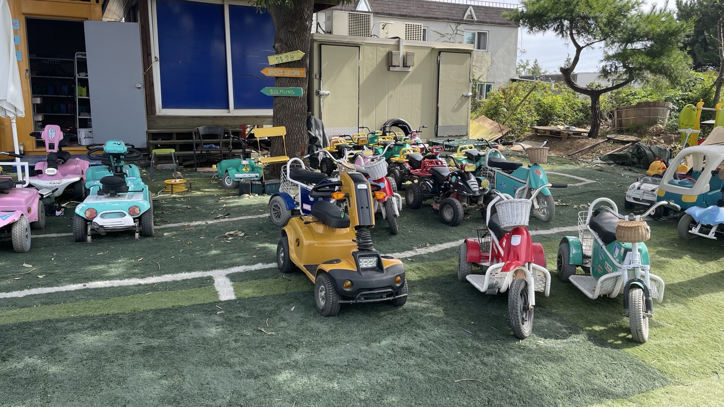 바이크, 전동차, 카트 등등... 어린이들을 위한 탈것들도 준비되어 있고요.