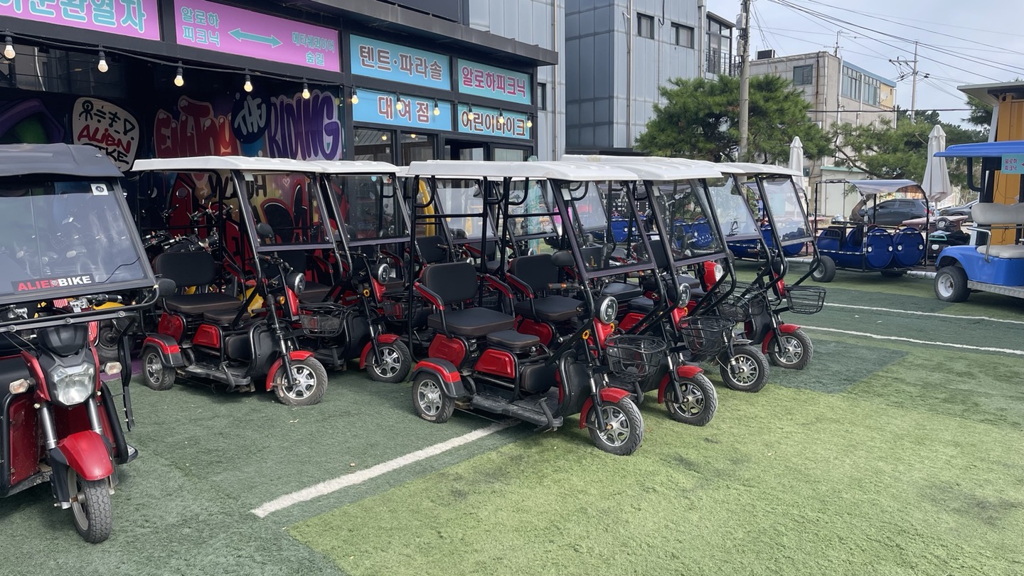 자칫 잘못했다가는 즐겁게 나선 나들이길이 짜증과 불만으로 끝날 수 있기에 전동기를 빌려 한바퀴 돌기로 했습니다.