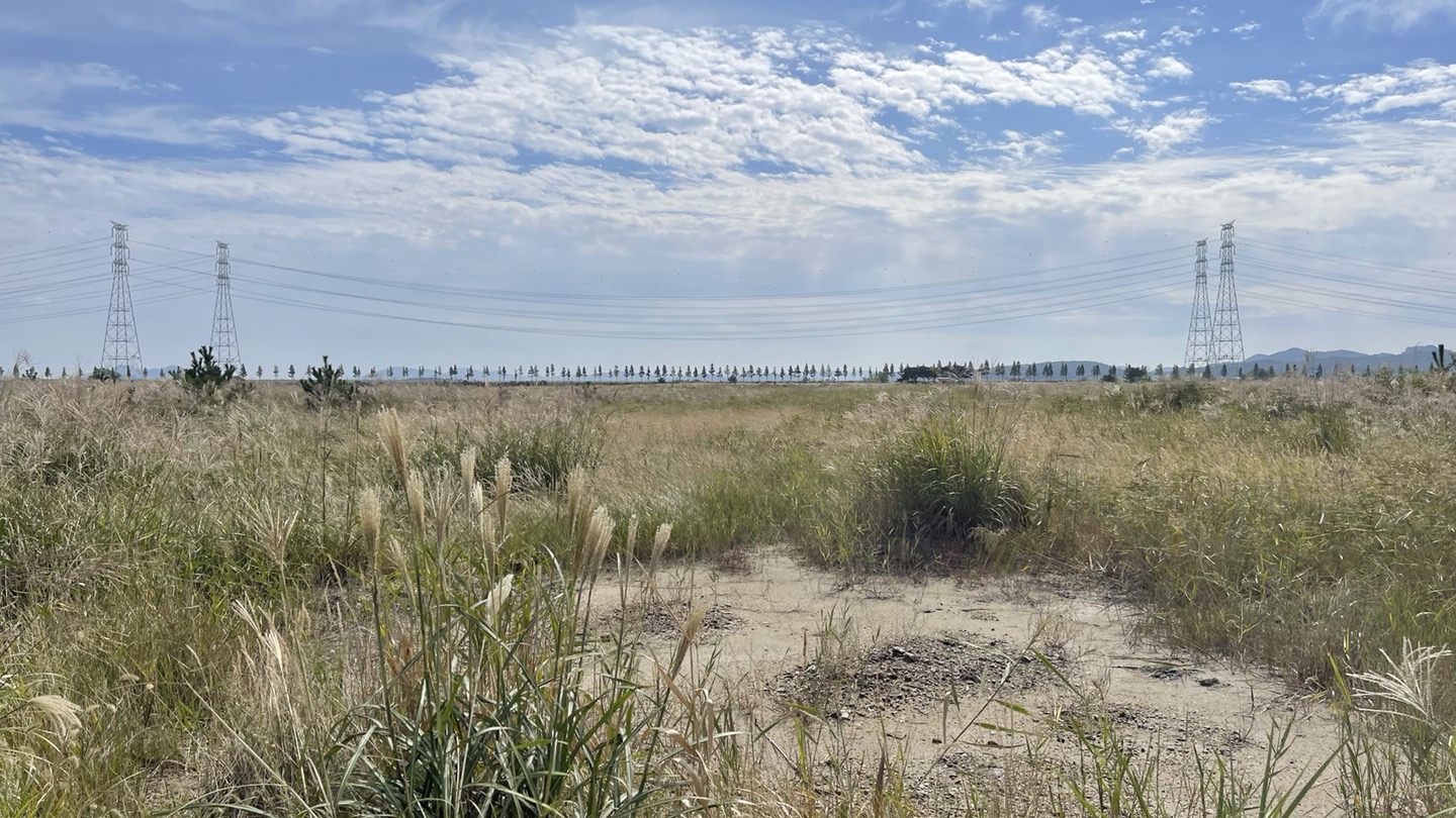맞은 편 점점이 보이는 것들이 메타세콰이어 나무들이에요.^^