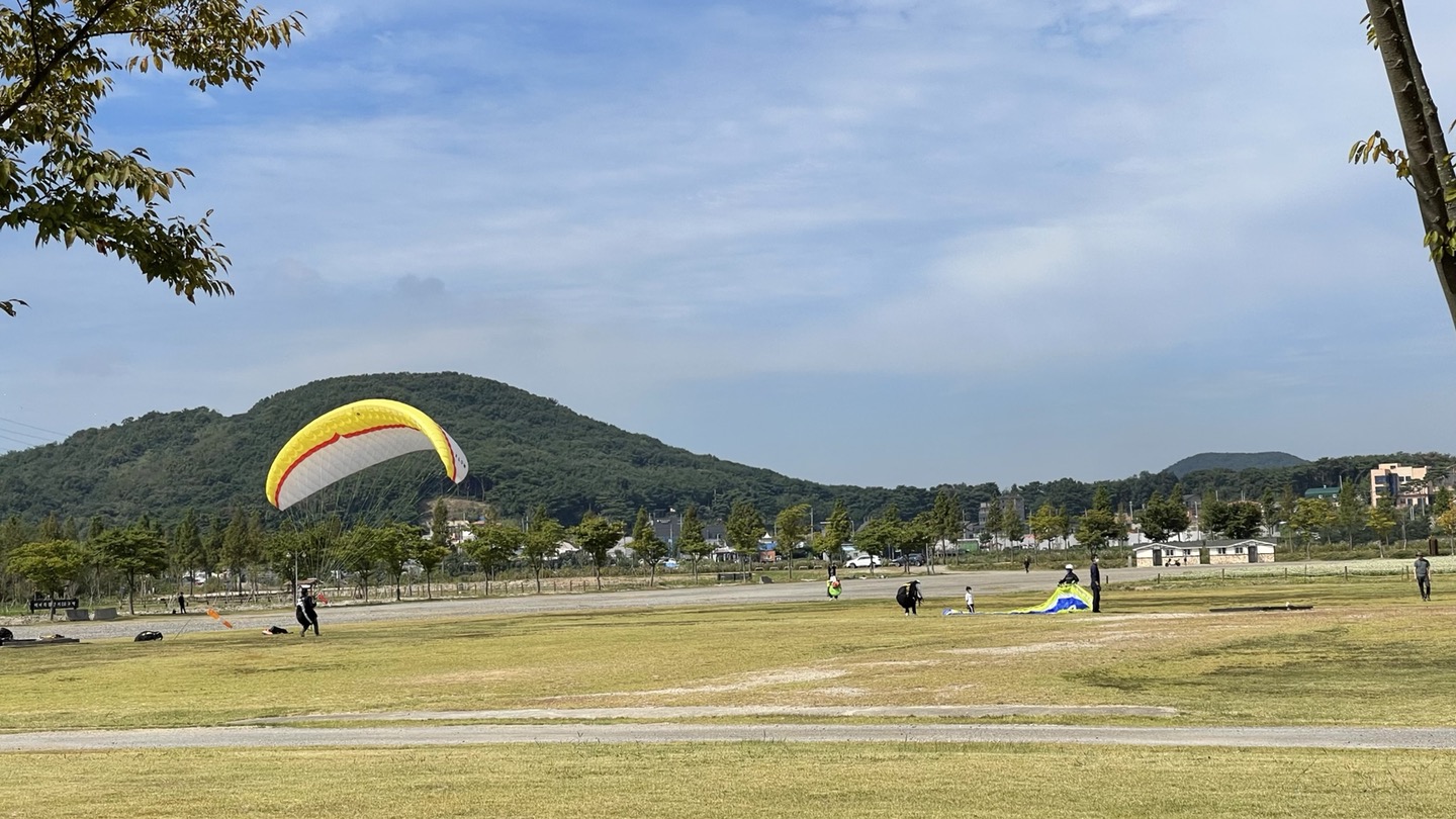 넓은 잔디광장에는 패러글라이딩을 연습하는 사람들이 많이 보였습니다.