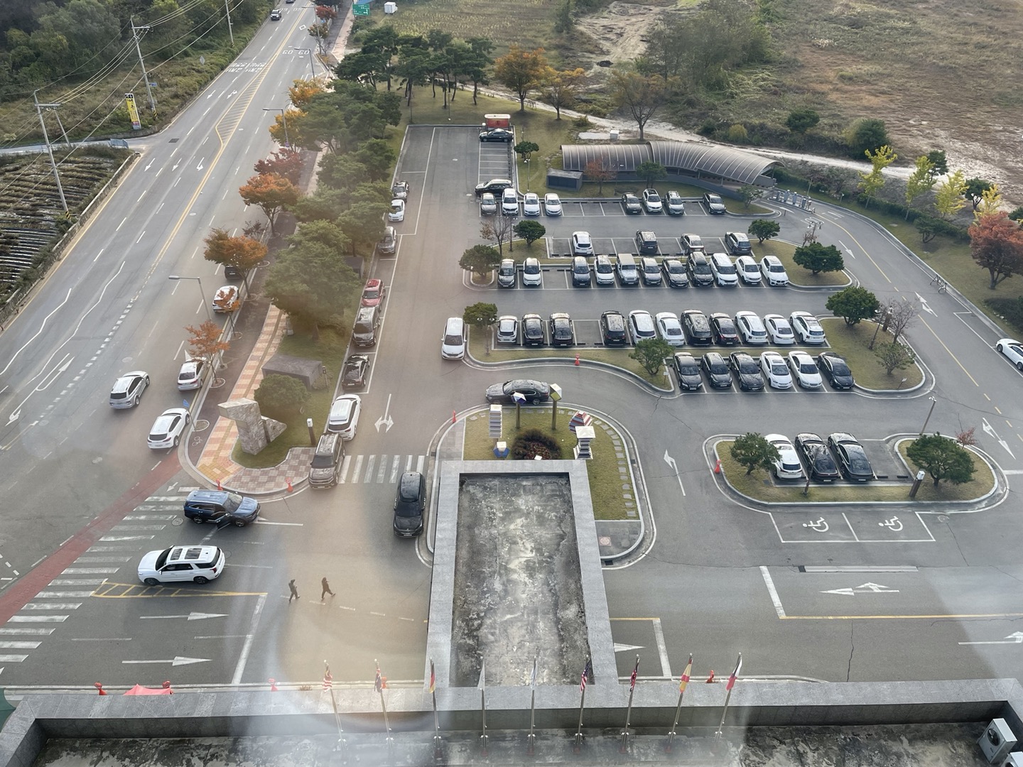 위에서 내려다 본 주차장 모습이에요. 지하주차장도 있습니다.