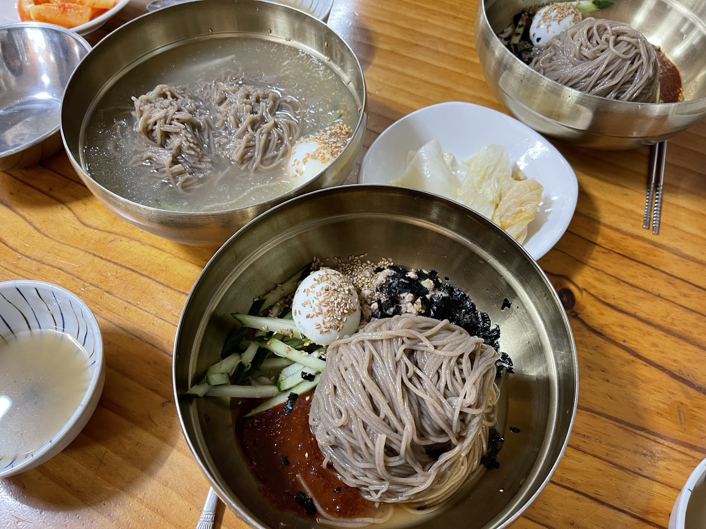 특유의 향이 있는데, 이게 메밀향인지 양념에서 나는 향인지 잘 모르겠더라고요. 그 향이 좀 낯설어서 맛있다는 생각이 잘...;;