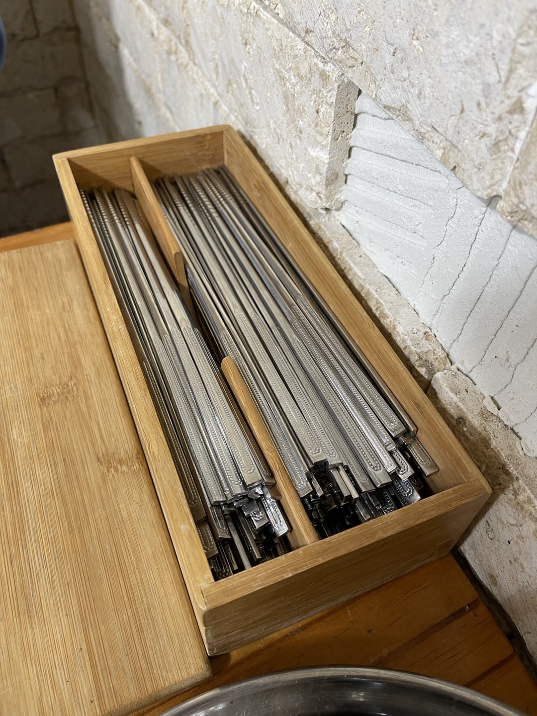 이곳 수저통에는 젓가락만 가득 들어있어요.ㅋ 숟가락이나 포크가 필요하시면 따로 부탁하면 됩니다.