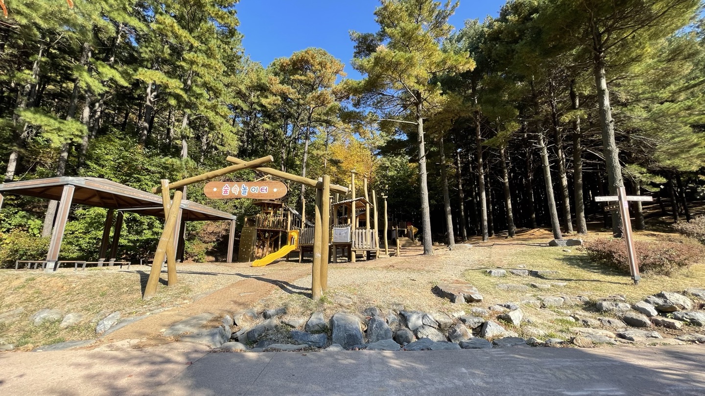 조금 걷다보니 숲속놀이터가 있네요. 놀이터 주변으로 녹음이 짙어서 뛰어놀다 나무그늘에서 쉬기에 안성맞춤이겠어요.