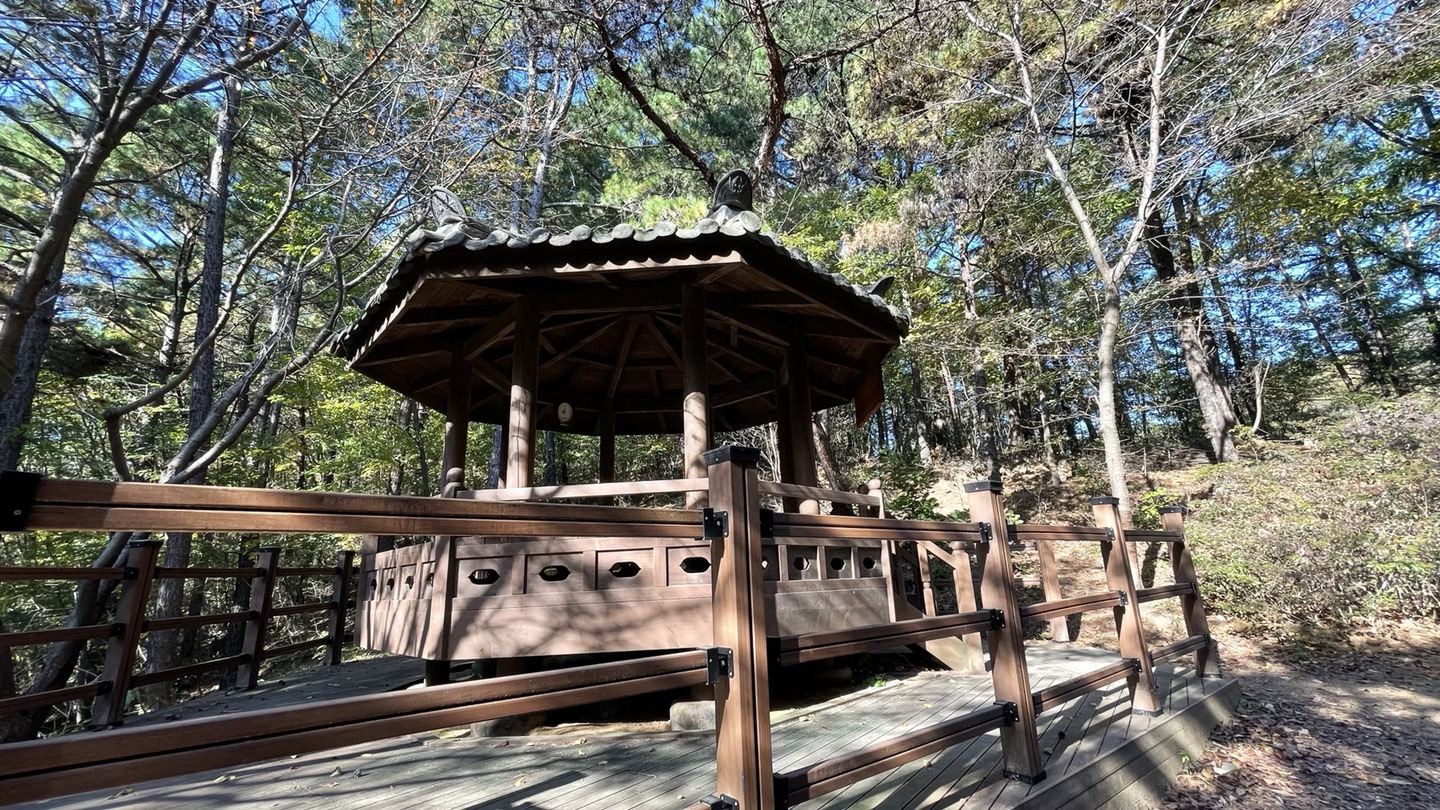 나무데크 계단을 올라가다 보면 정자가 하나 나오는데, 이 때 왼쪽 방향으로 올라갑니다.