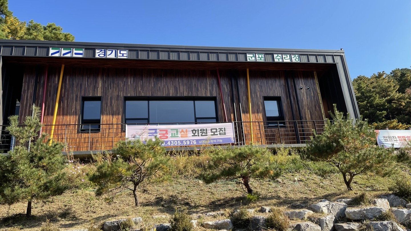 등산로가 시작되는 곳에 '수리정'이라는 궁도장이 있습니다. 회원모집 중이네요^^