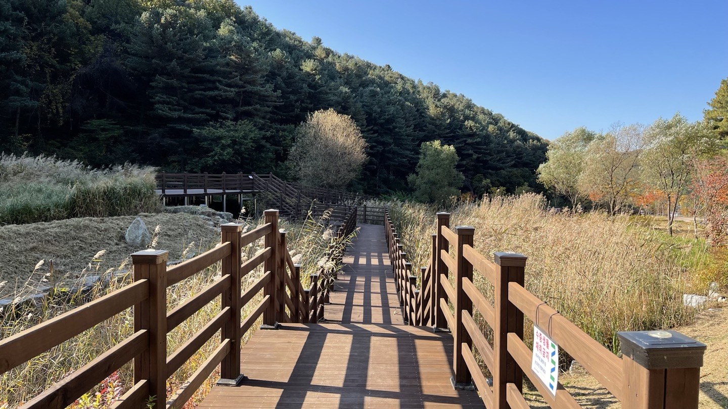 습지 사이로 나무데크 산책길이 있습니다.