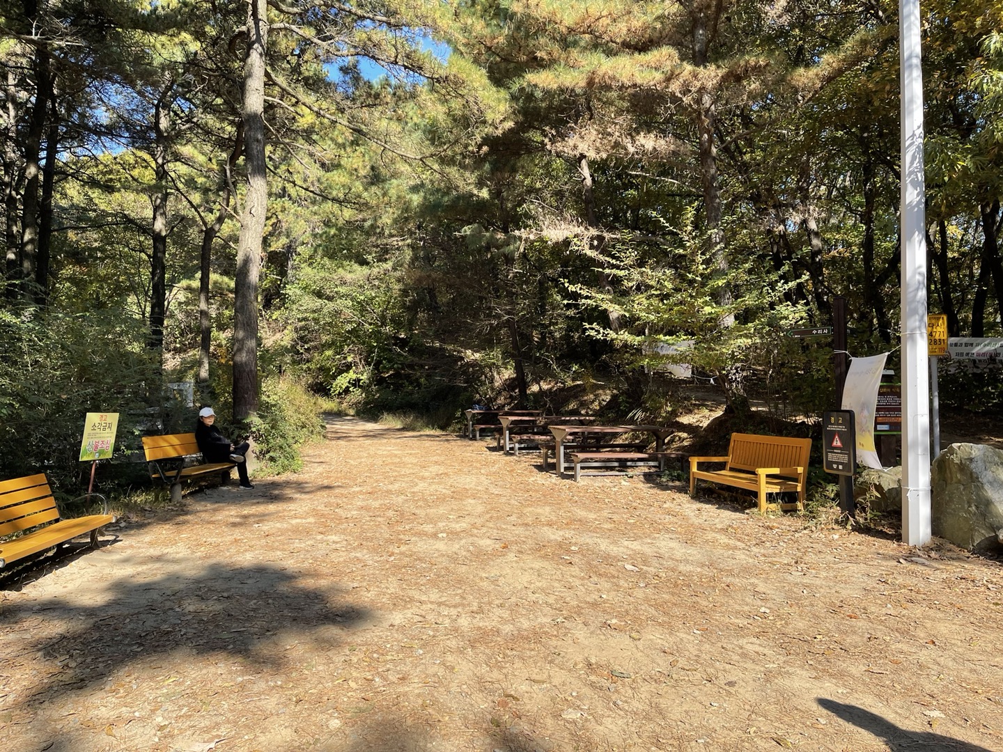 이렇게 벤치들이 길게 놓여있는 곳 왼쪽으로 올라가면 됩니다.