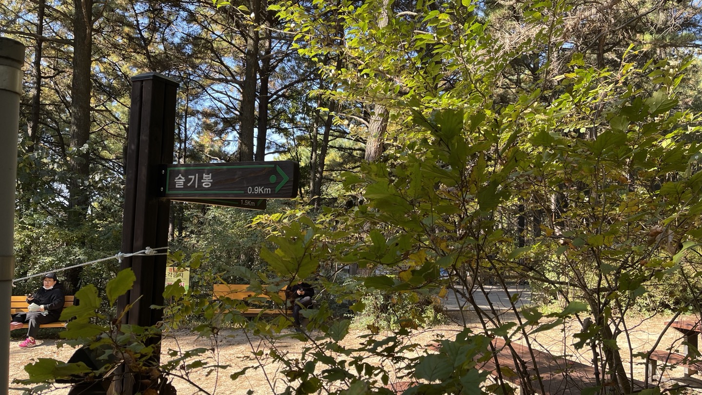 마침 안내표지판도 보이네요. 슬기봉까지 0.9km