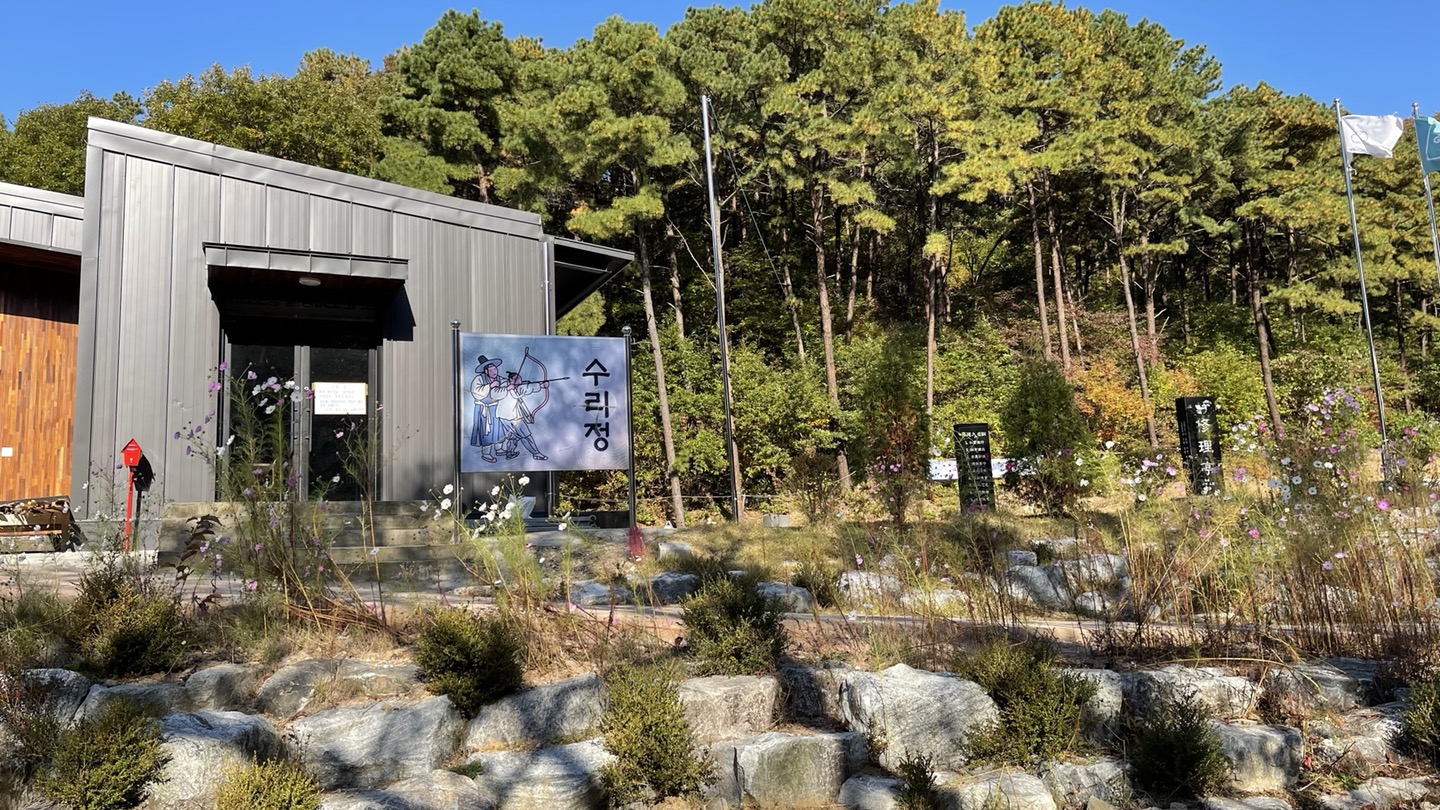 등산로가 시작되는 곳에 '수리정'이라는 궁도장이 있습니다. 회원모집 중이네요^^