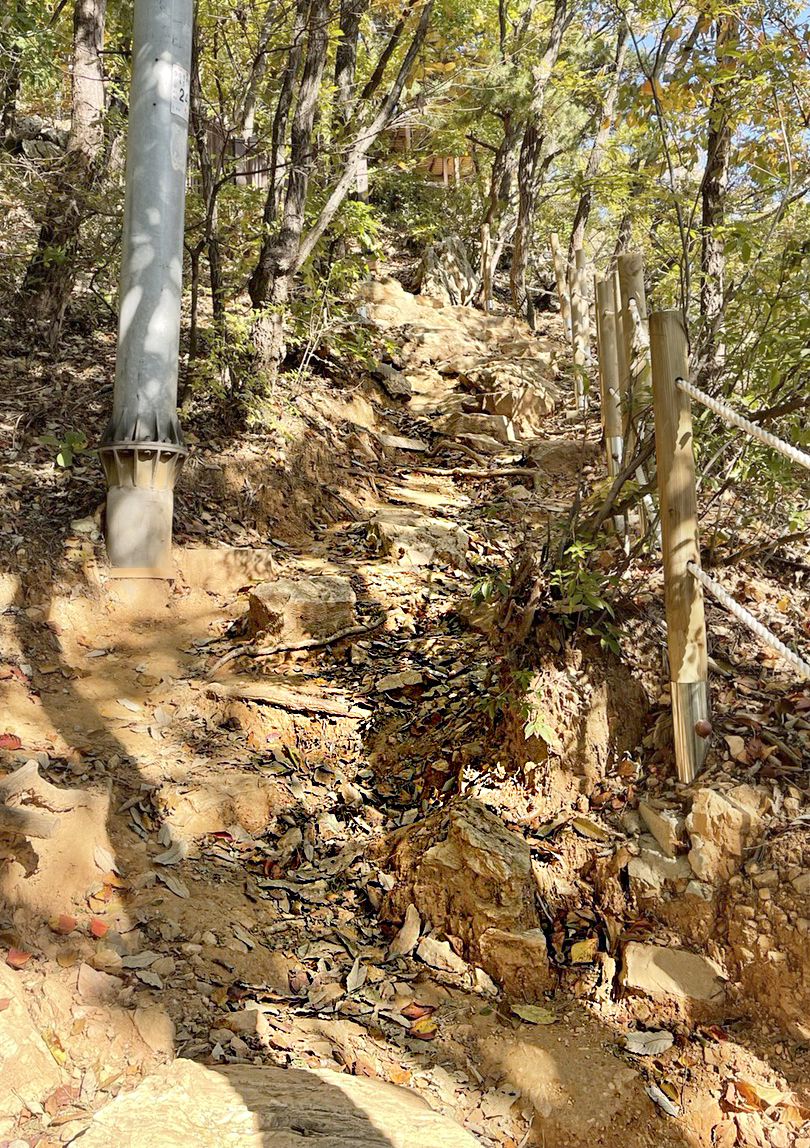 돌길이 가파른데다 낙엽으로 인해 길이 미끄럽다보니 올라오는 내내 좀 무서웠어요. 나무데크 계단이 나오면 무지 반가웠습니다. ㅎ