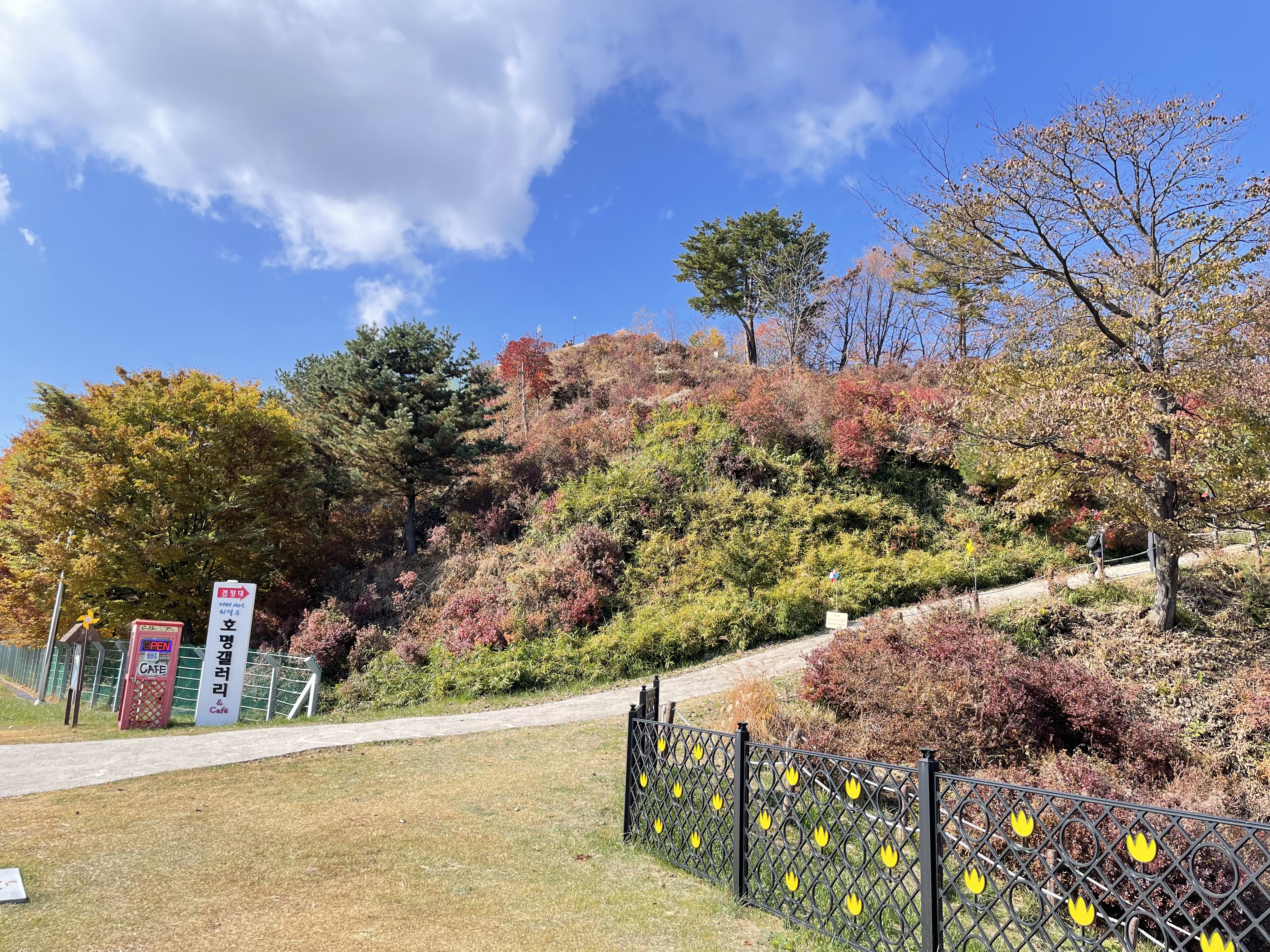 저희는 호명호수까지 걸어서 올라오느라 아이들이 지쳐있어서 아쉽지만 여기까지만 보고 내려왔습니다.