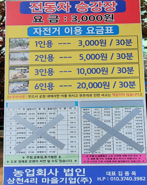운영시간 : 매일 09:00 ~ 18:00 (날씨가 추워져 호수가 얼기 시작하면 일시적으로 운영을 중단한다고 하니 추워지는 계절에 방문계획이 있으시다면 미리 문의해 보시면 좋겠어요.)