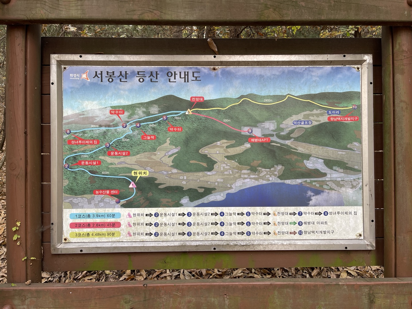 아치형 입구를 지나 조금 올라오면 서봉산 등산 안내도가 있습니다.