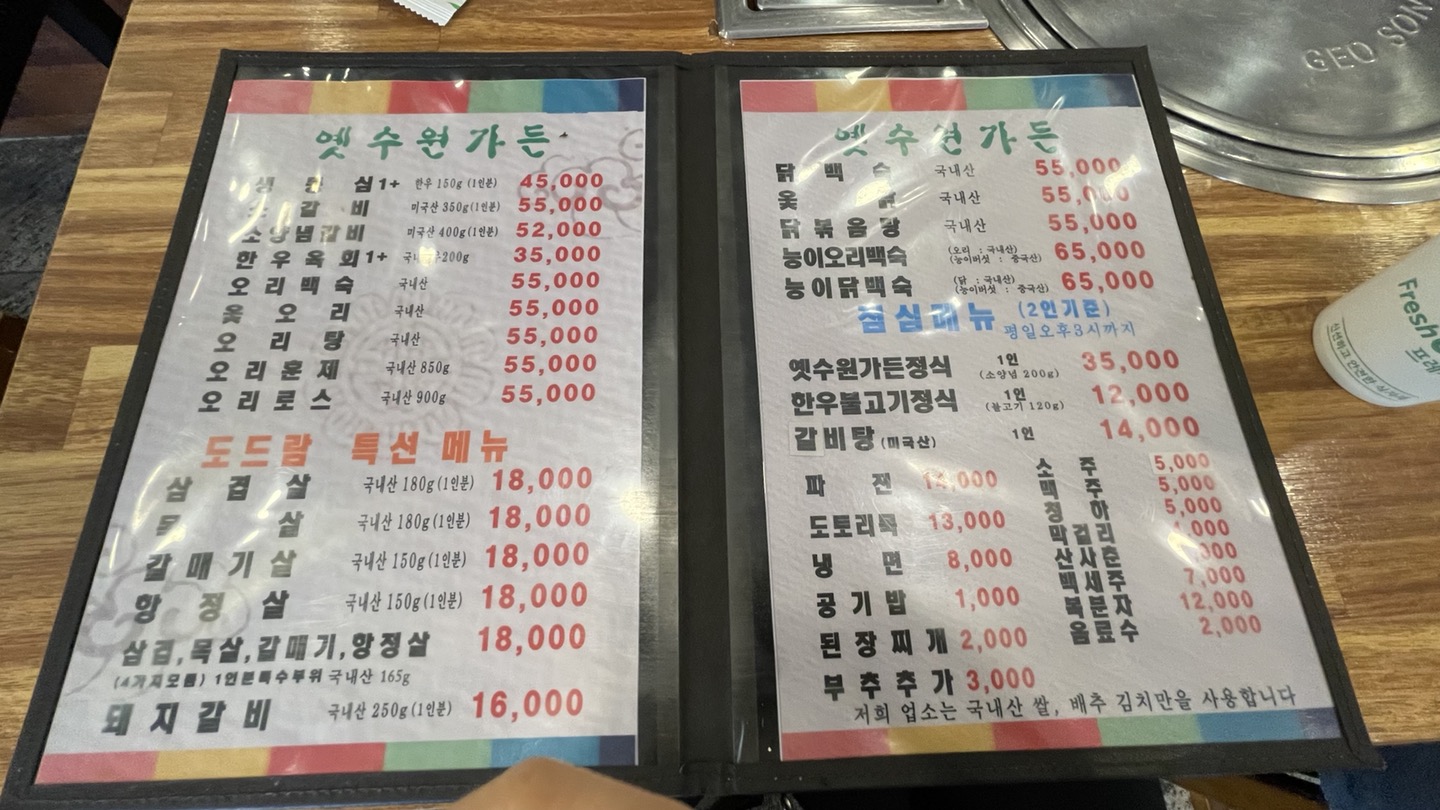 바깥에서 '한우불고기정식' 메뉴가 있는 것을 보고 들어왔는데, 막상 들어와 보니 평일 점심에만 가능한 메뉴였어요;;