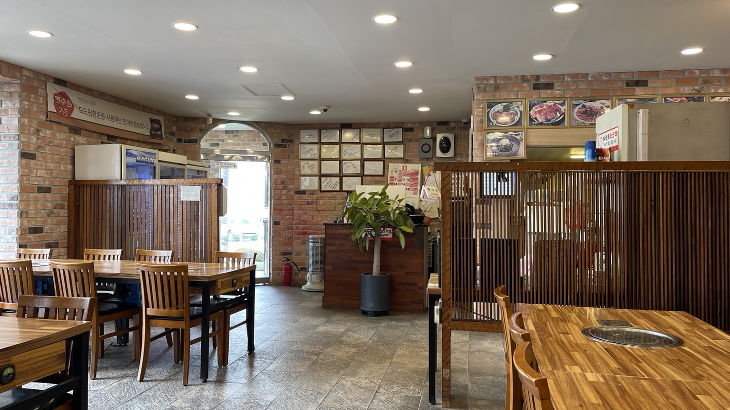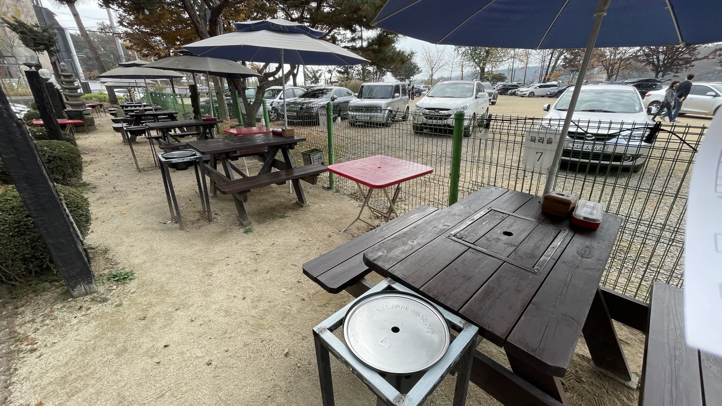 매장 앞에는 야외에서 고기를 구워먹을 수 있는 파라솔 테이블도 있습니다.