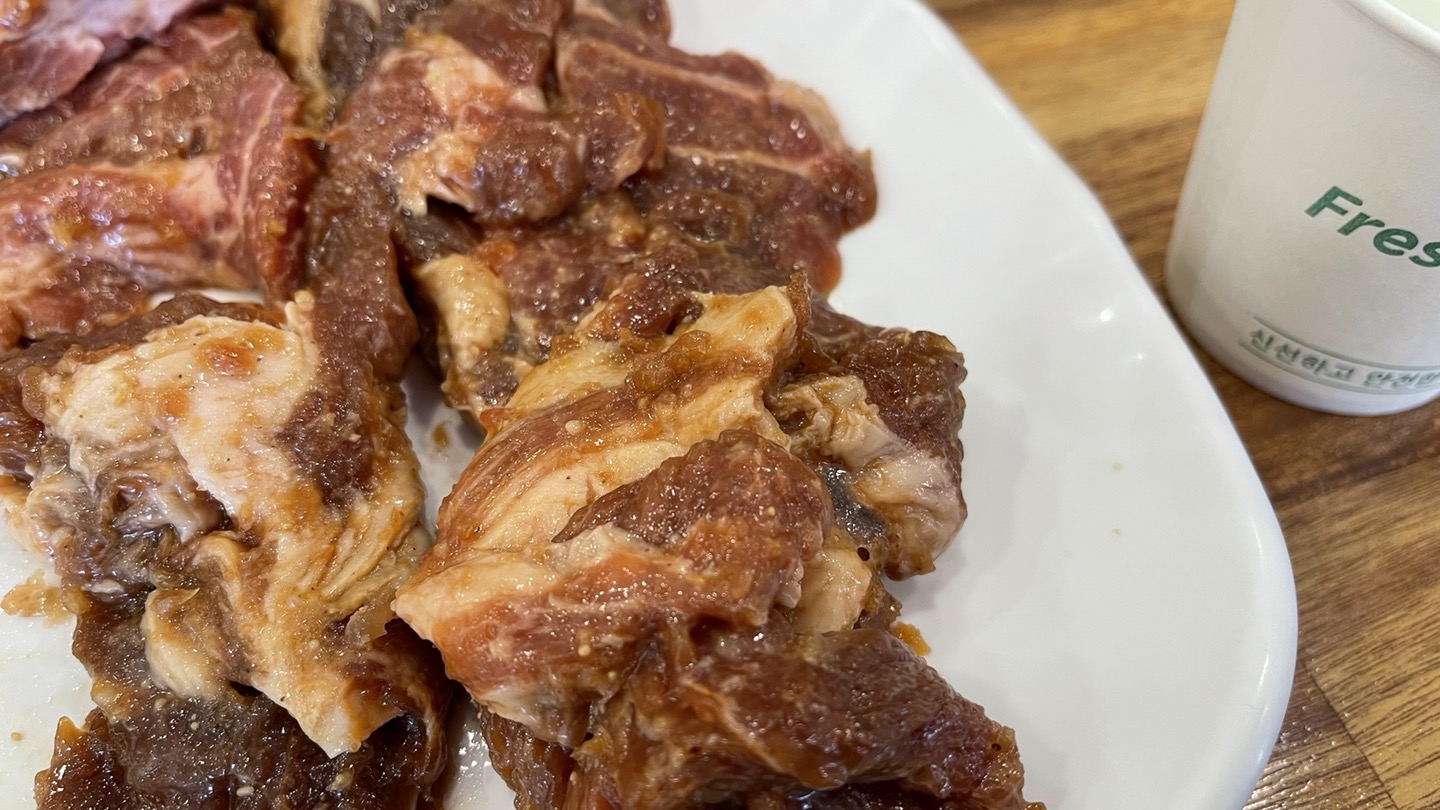 돼지갈비 양은 괜찮았어요. 그런데 양념고기인데다 숯불이 너무 셌는지 많이 태웠습니다.ㅜㅜ