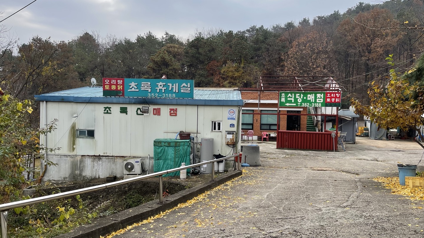 초록산 산림욕장 입구로 가는 길에 식당이랑 매점이 보입니다. 좀 허름해 보이는데...운영을 하고 있는건지는 확인을 못했네요.