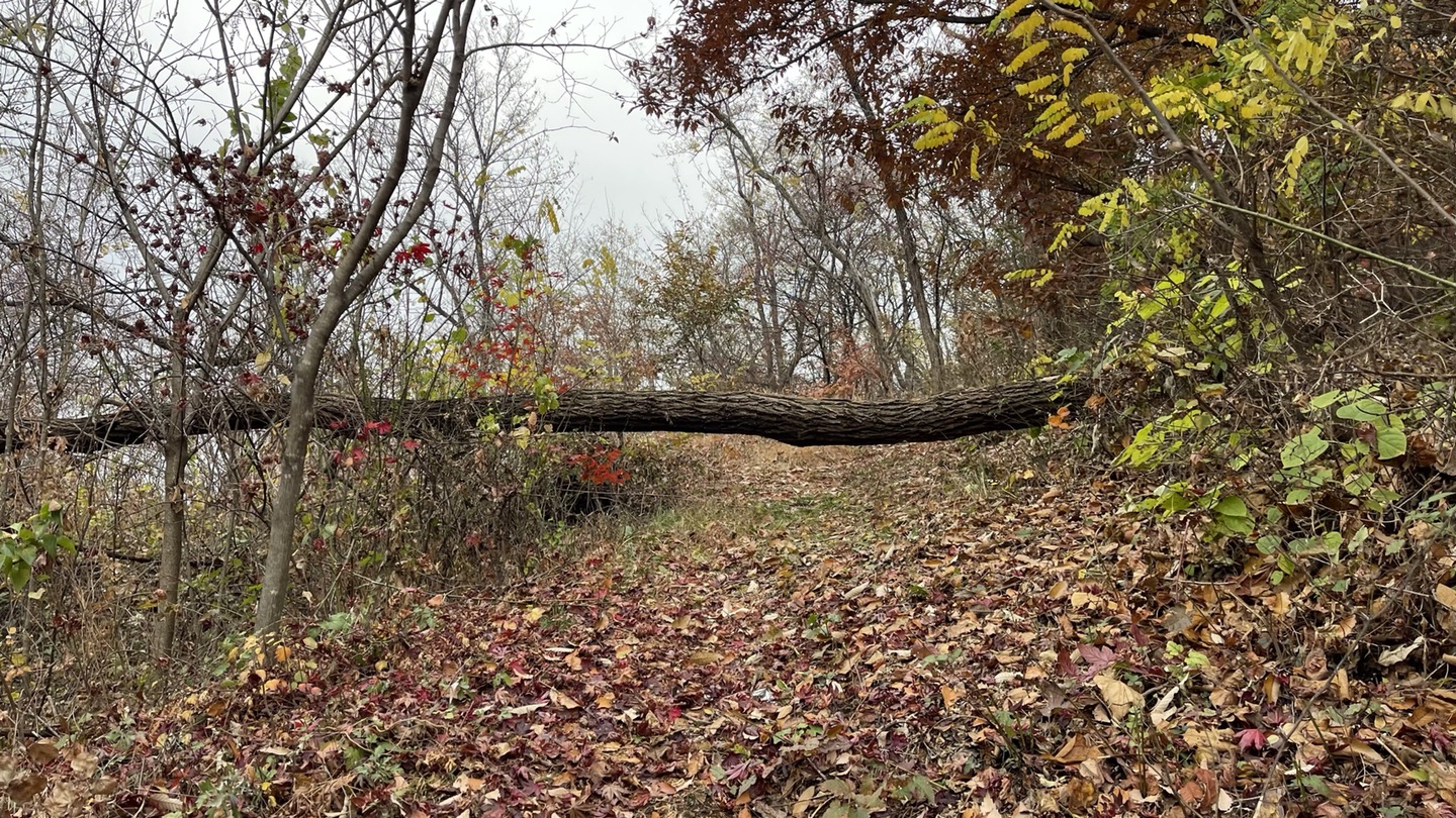 나무 한 그루가 쓰러져 막혀 있는데 일부러 막아놓은 것은 아니니 그냥 넘어가면 됩니다.