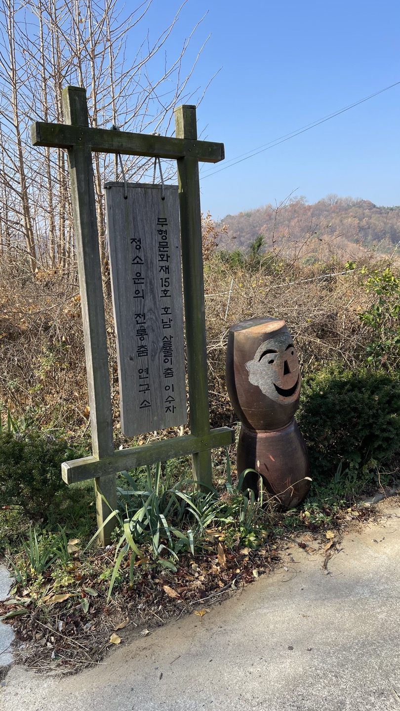 가다보니 길 건너편에 재밌게 생긴 조형물이 있네요. '무형문화재 15호 호남 살풀이춤 이수자 정소운의 전통춤 연구소'라고 쓰여 있어요.