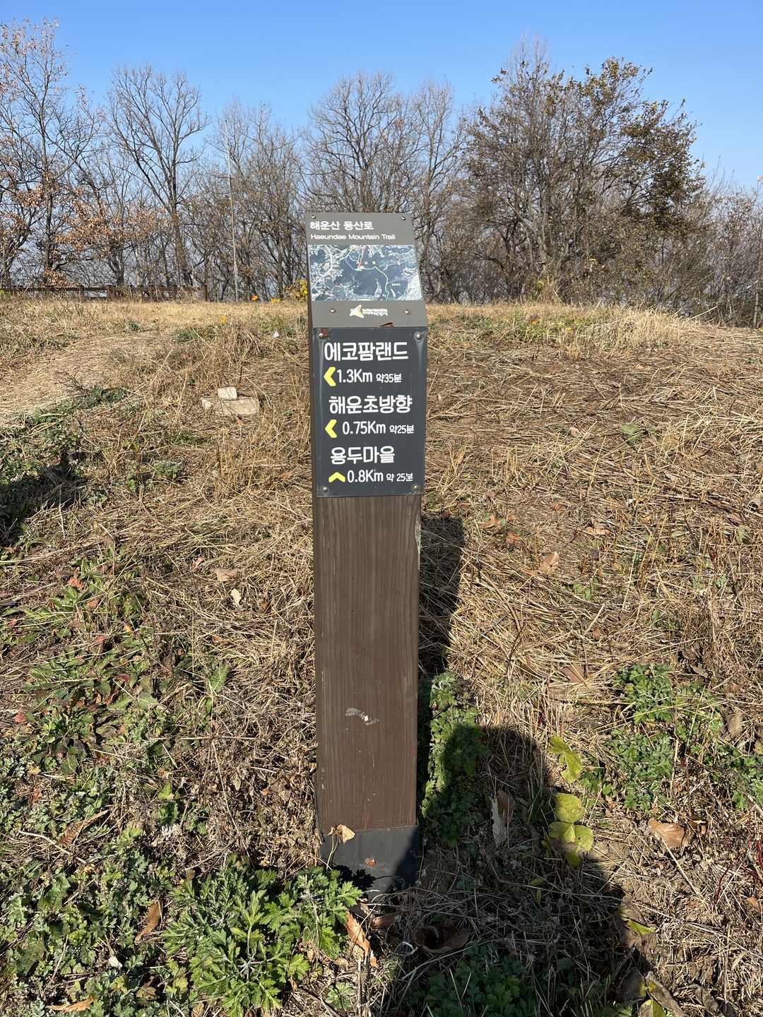 이정표가 나오네요. 해운산 정상까지 0.15km...